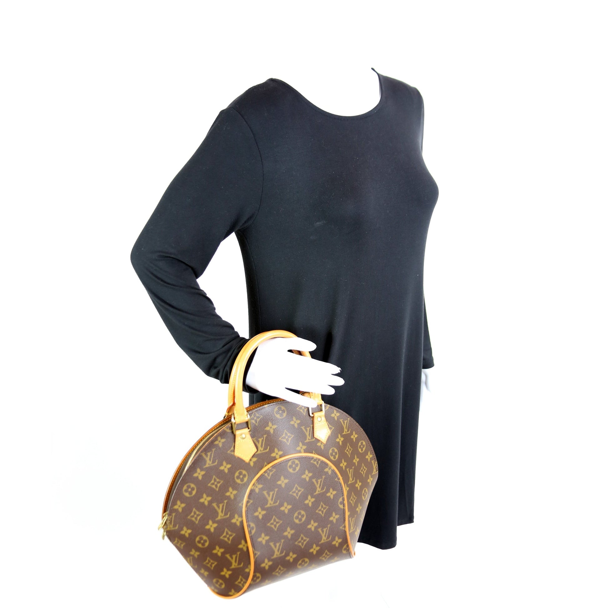 This Louis Vuitton Ellipse MMis eye catching bag. The exterior is in the classic Louis Vuitton Monogram coated canvas.