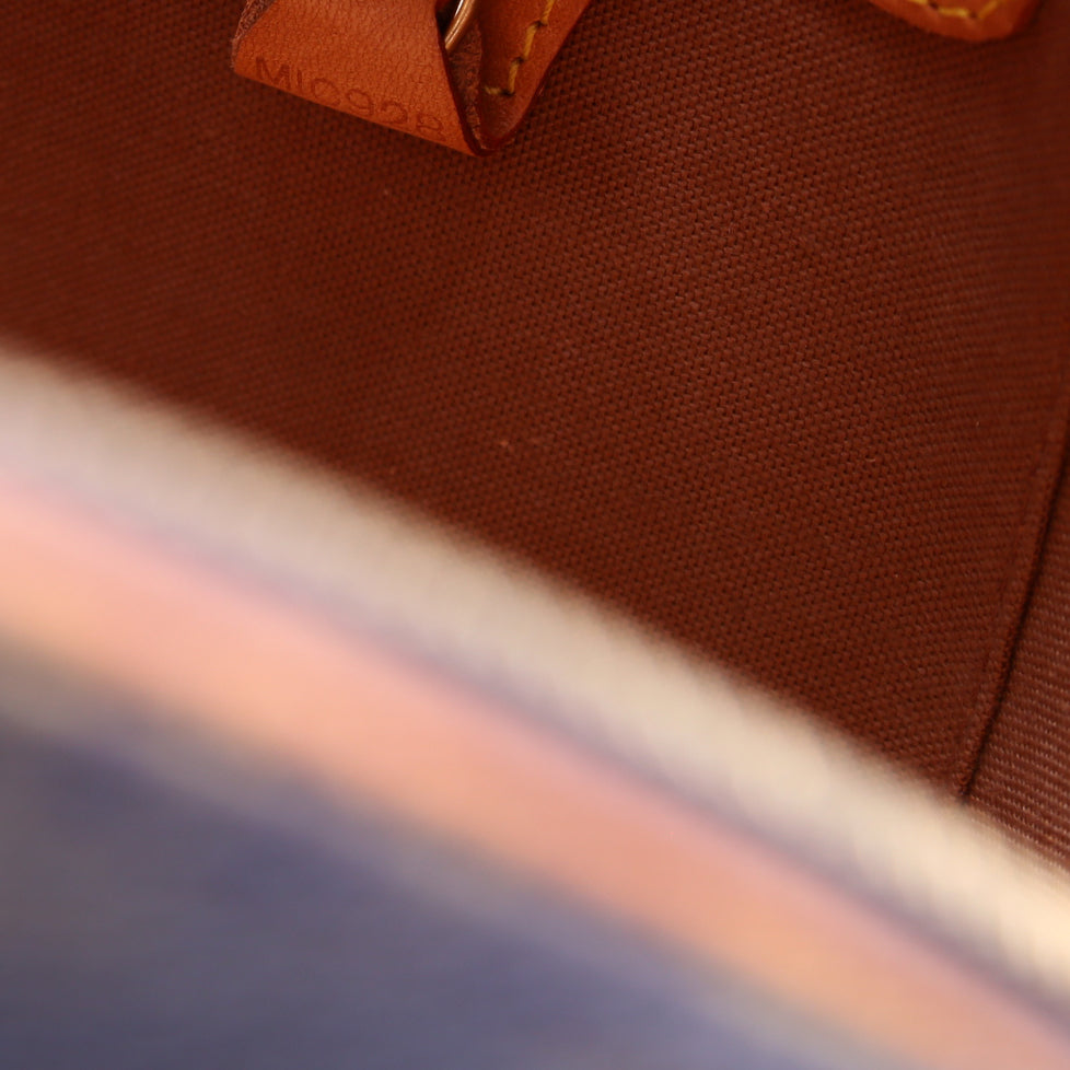Exterior: The exterior coated canvas is free of any rips or cracks. The leather trim shows minor discoloration.