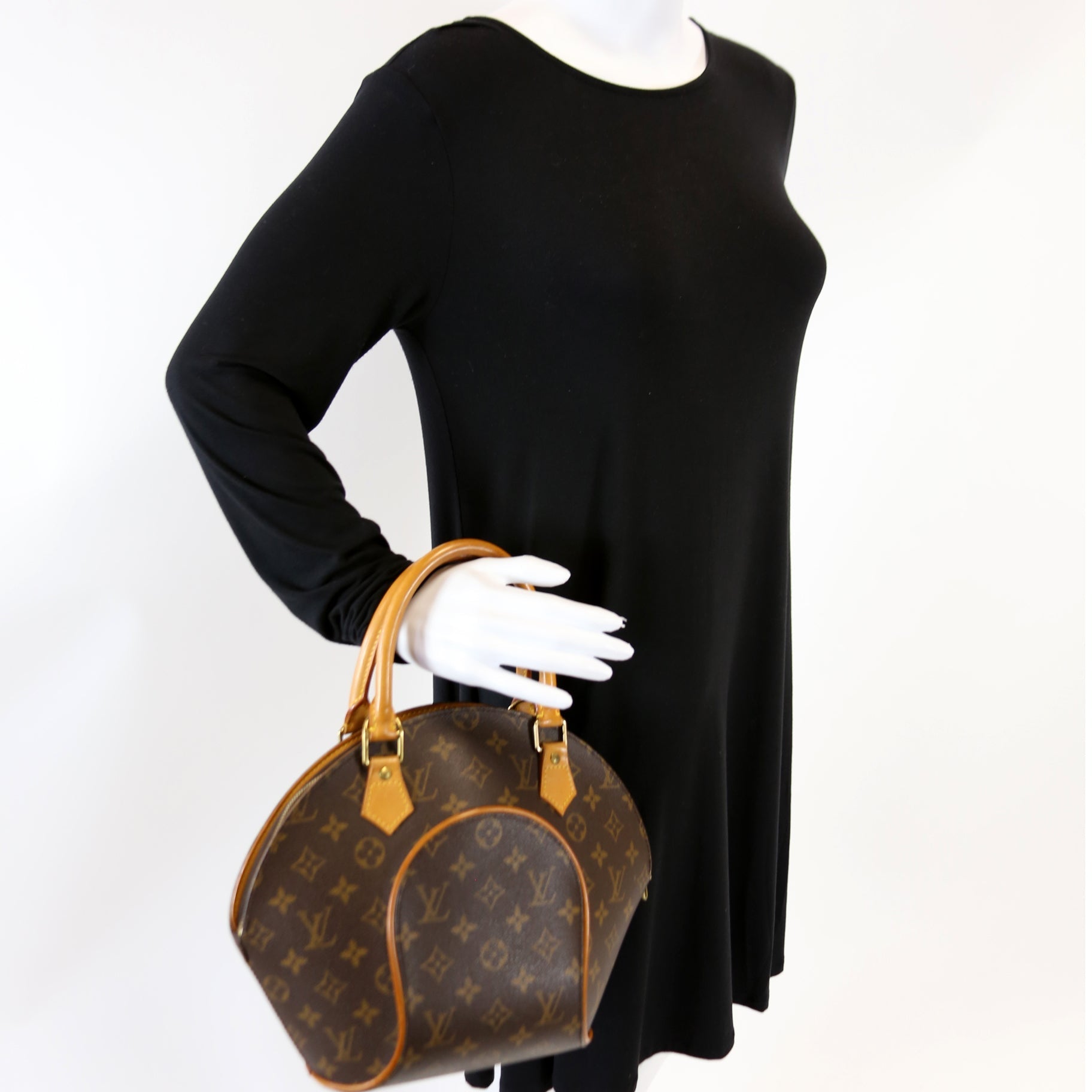 This Louis Vuitton Ellipse PMis eye catching bag. The exterior is in the classic Louis Vuitton Monogram coated canvas.