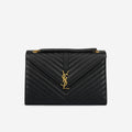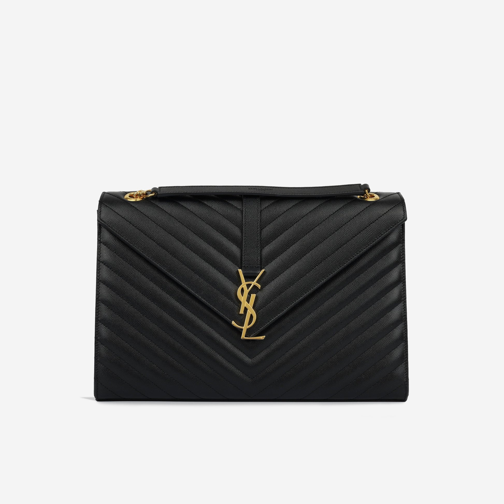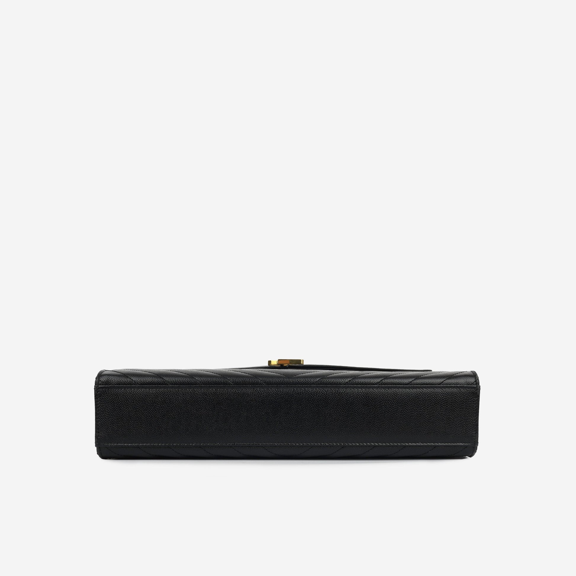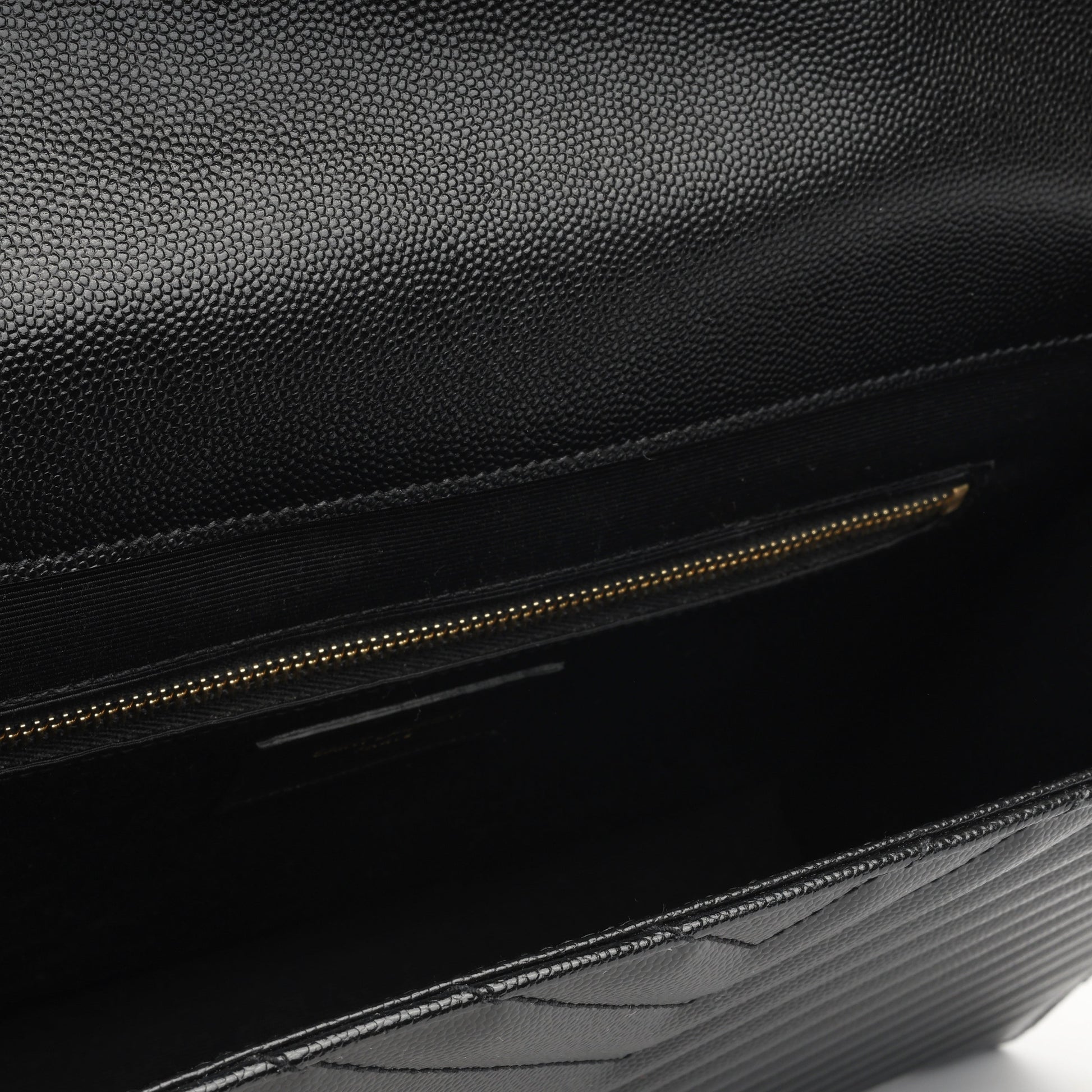 This YSL Envelope bag carries YSL's aesthetic perfectly by showcasing an edgy but structured design, and lends itself for day or night. The chevron stripe gives some modern detail to this boxy shaped satchel-style bag which has plenty of room for your essentials.