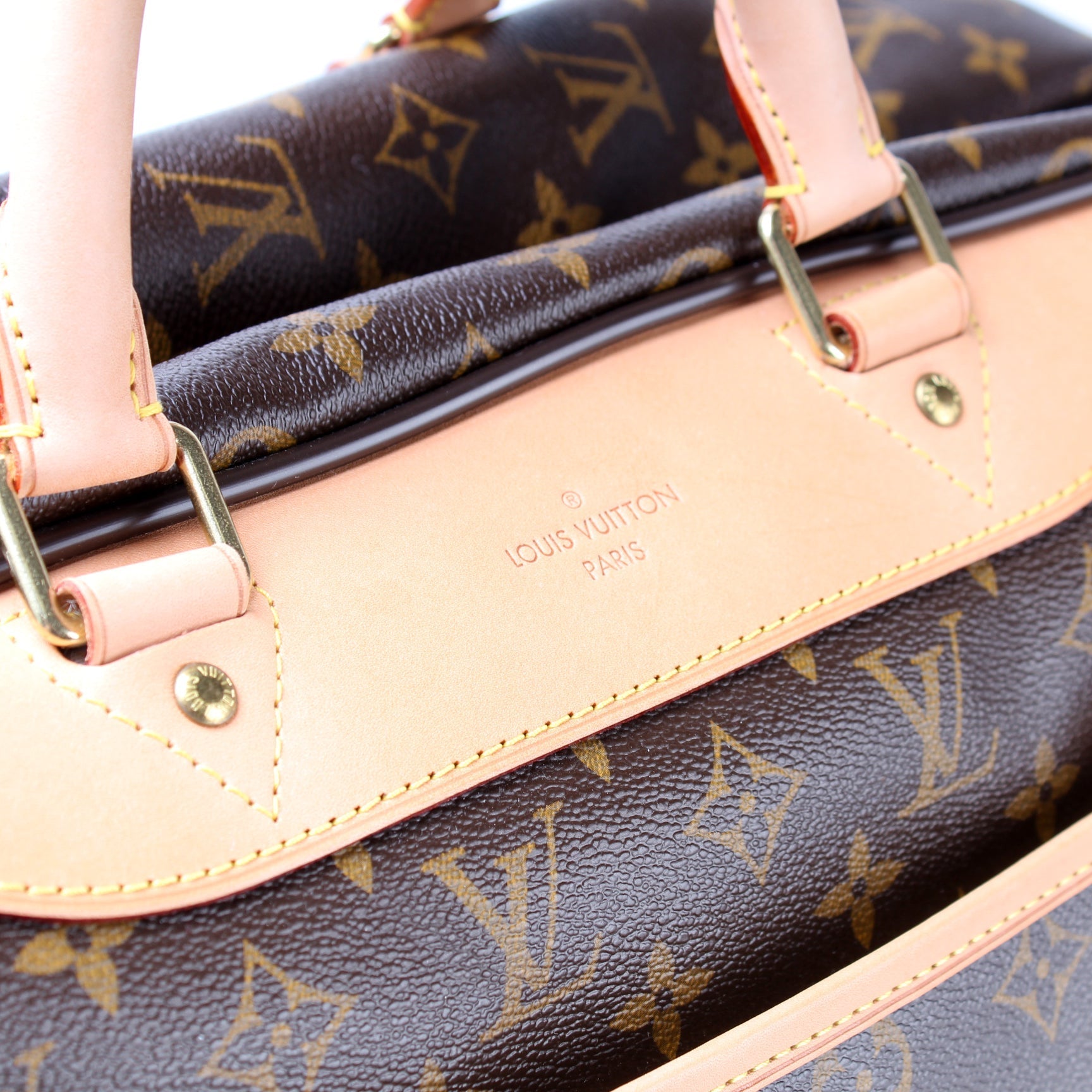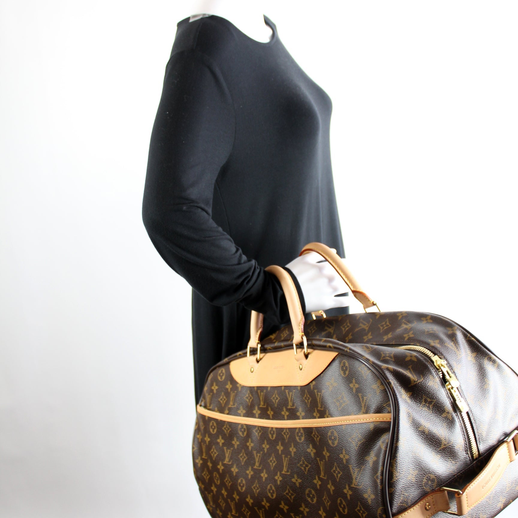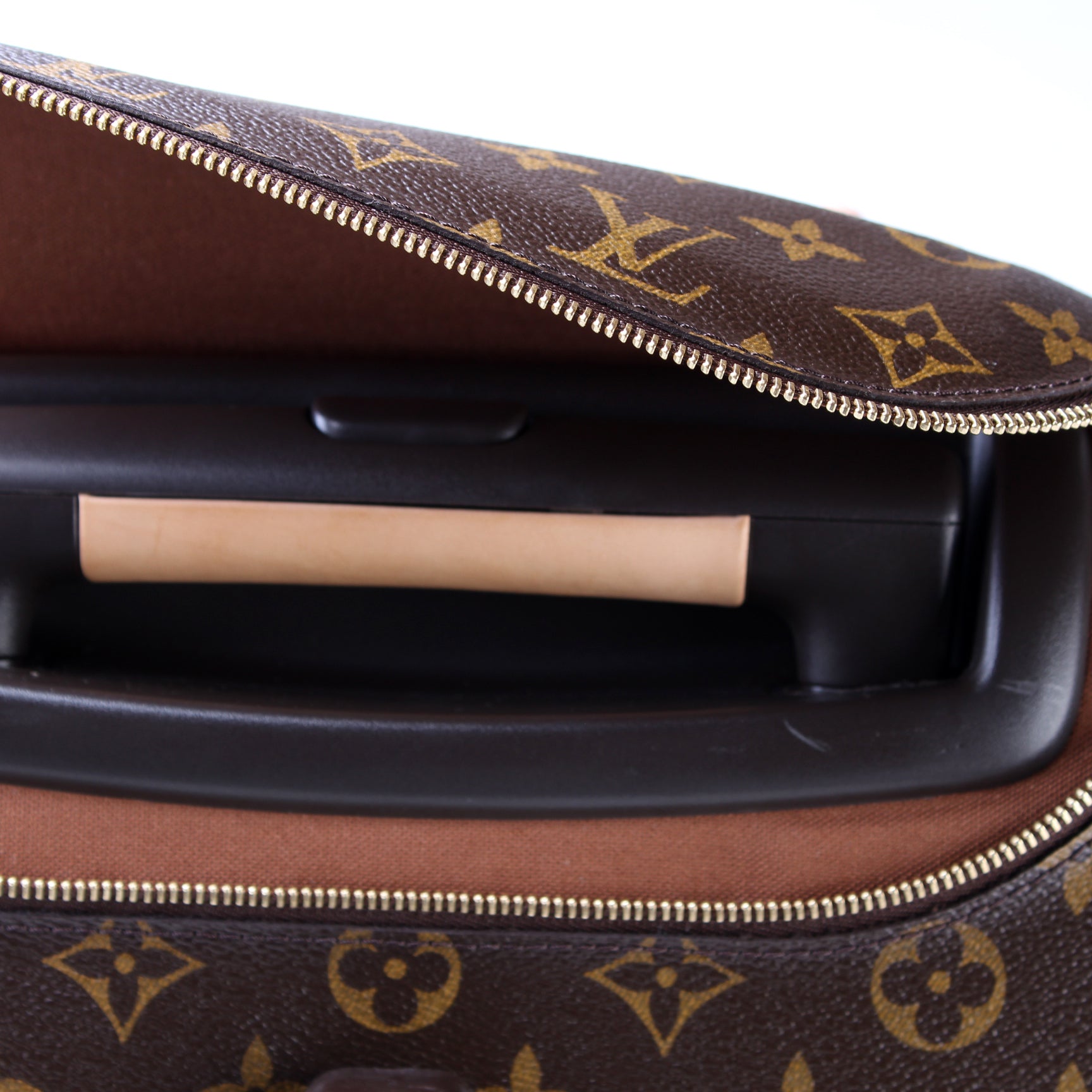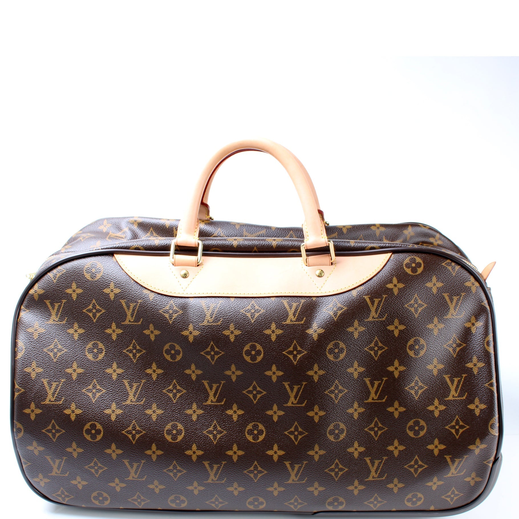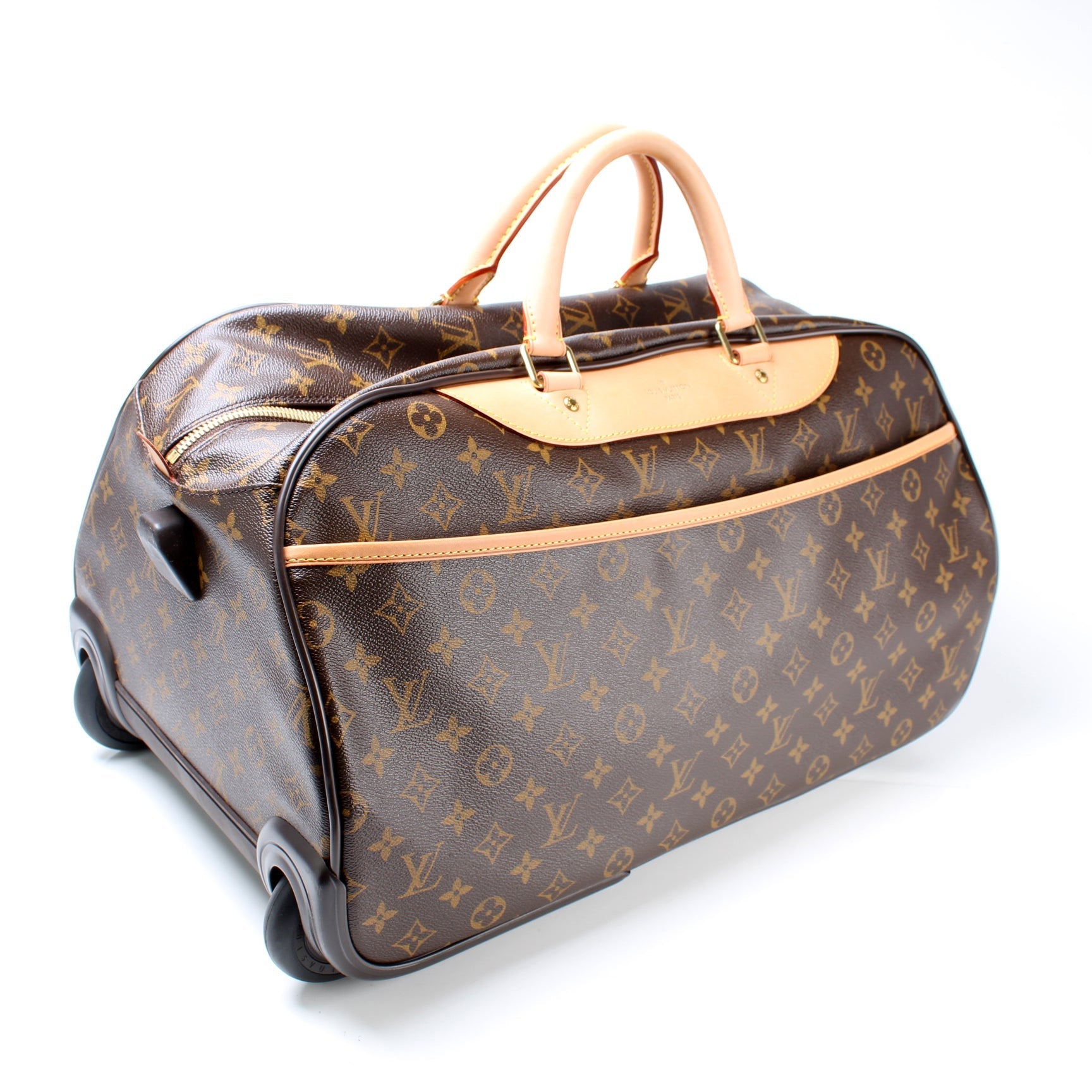 This Louis Vuitton Eole 50is eye catching bag. The exterior is in the classic Louis Vuitton Monogram coated canvas.