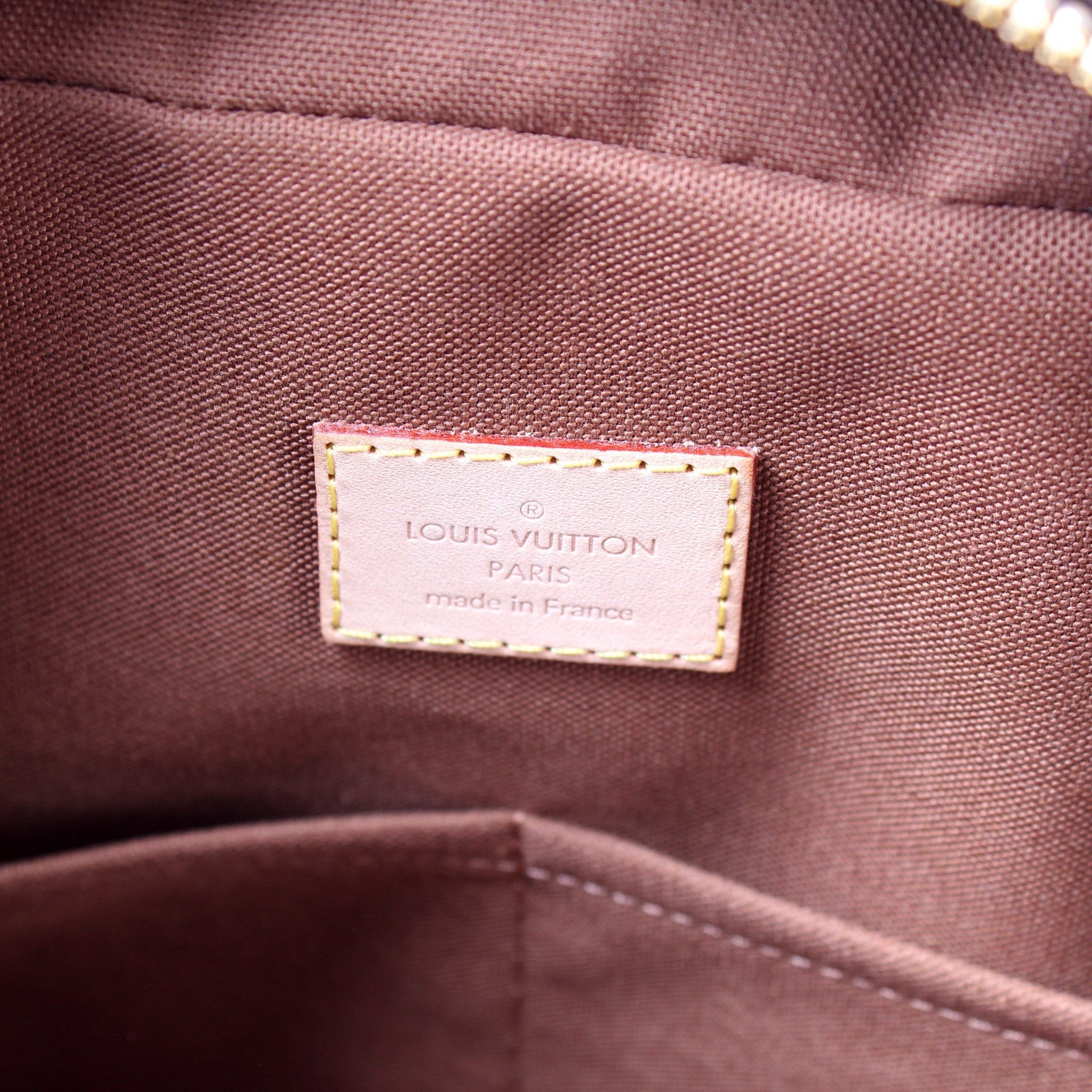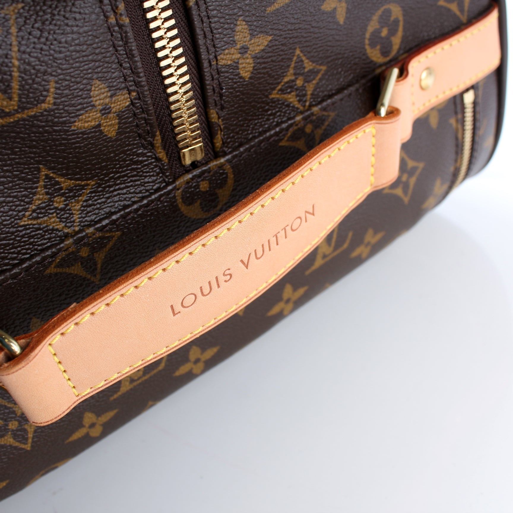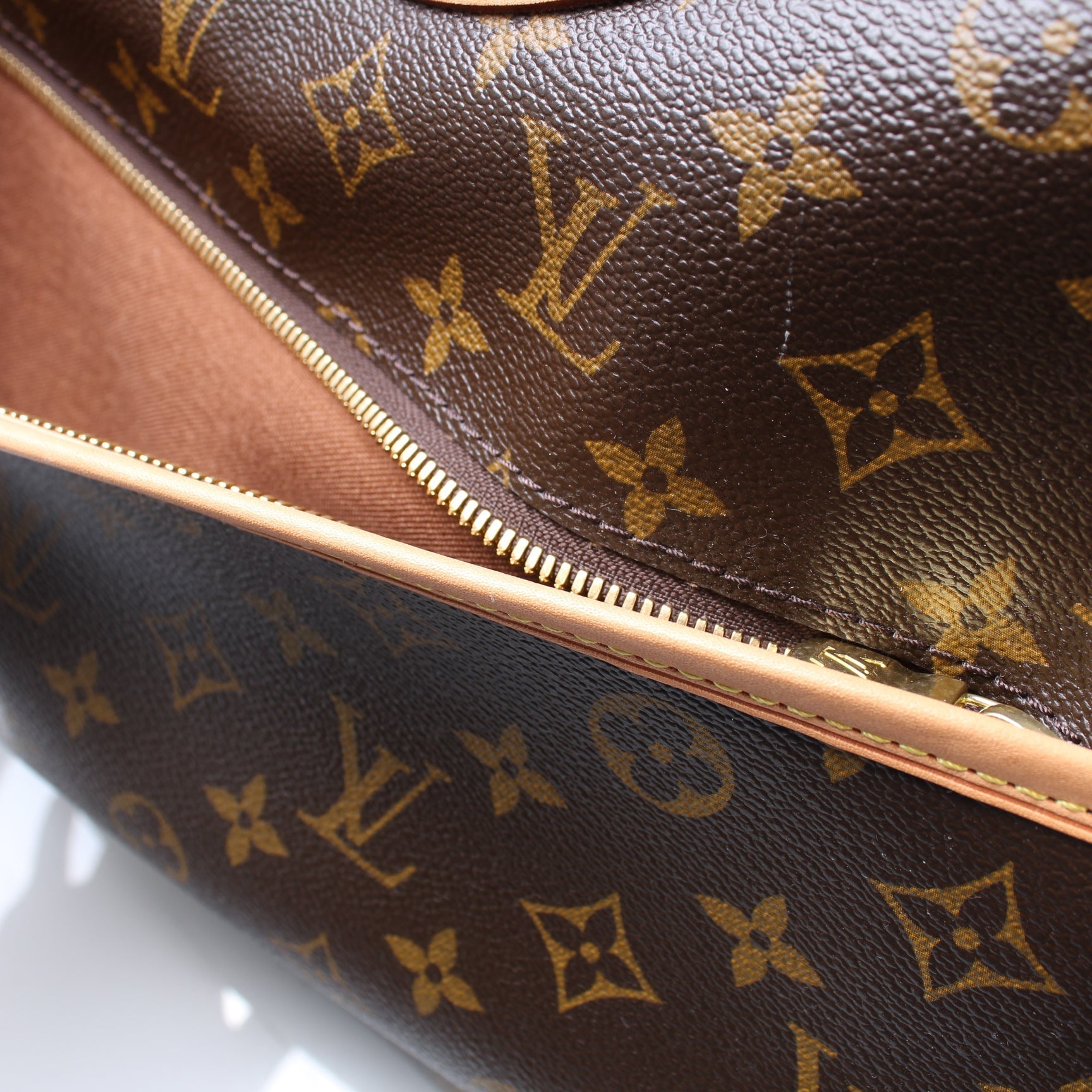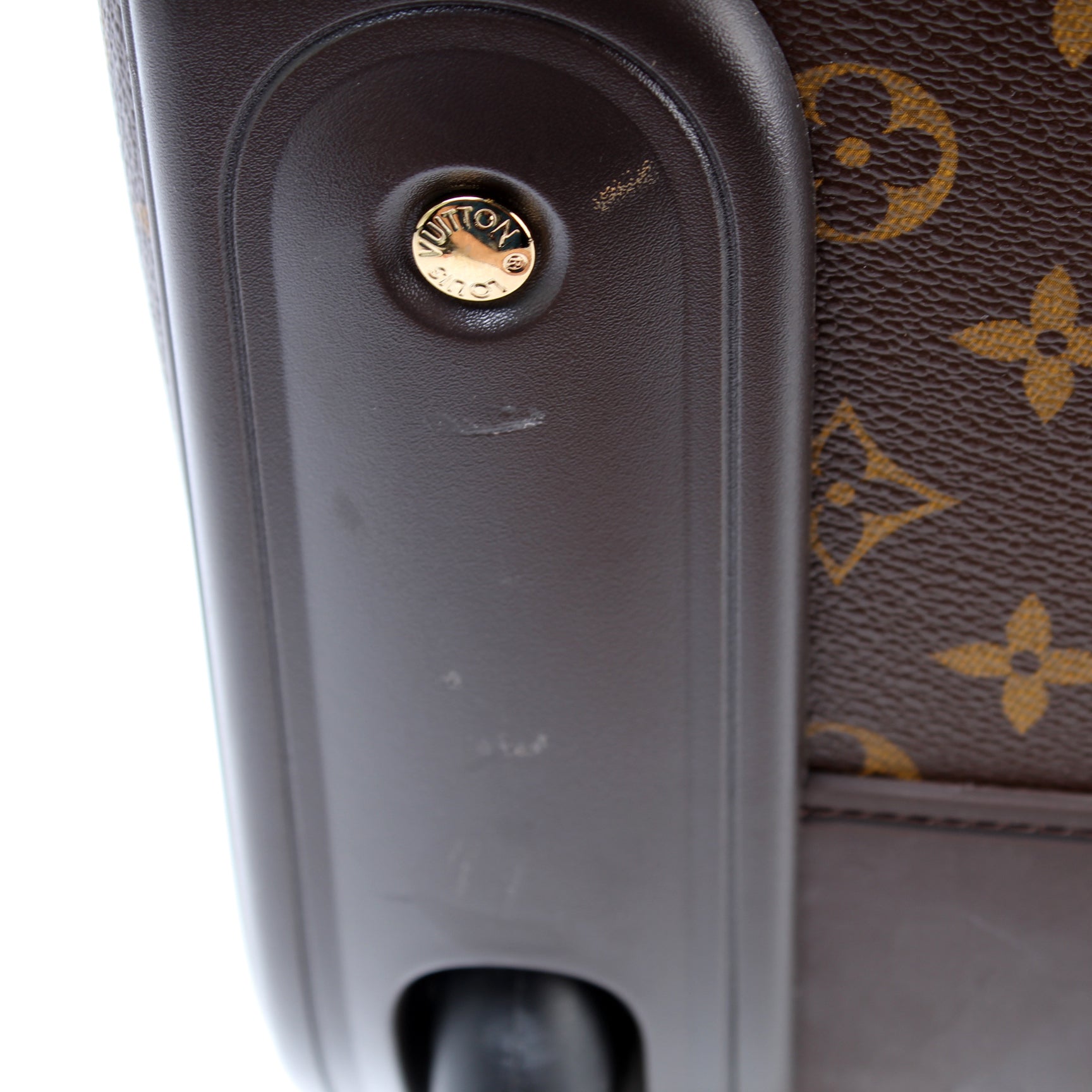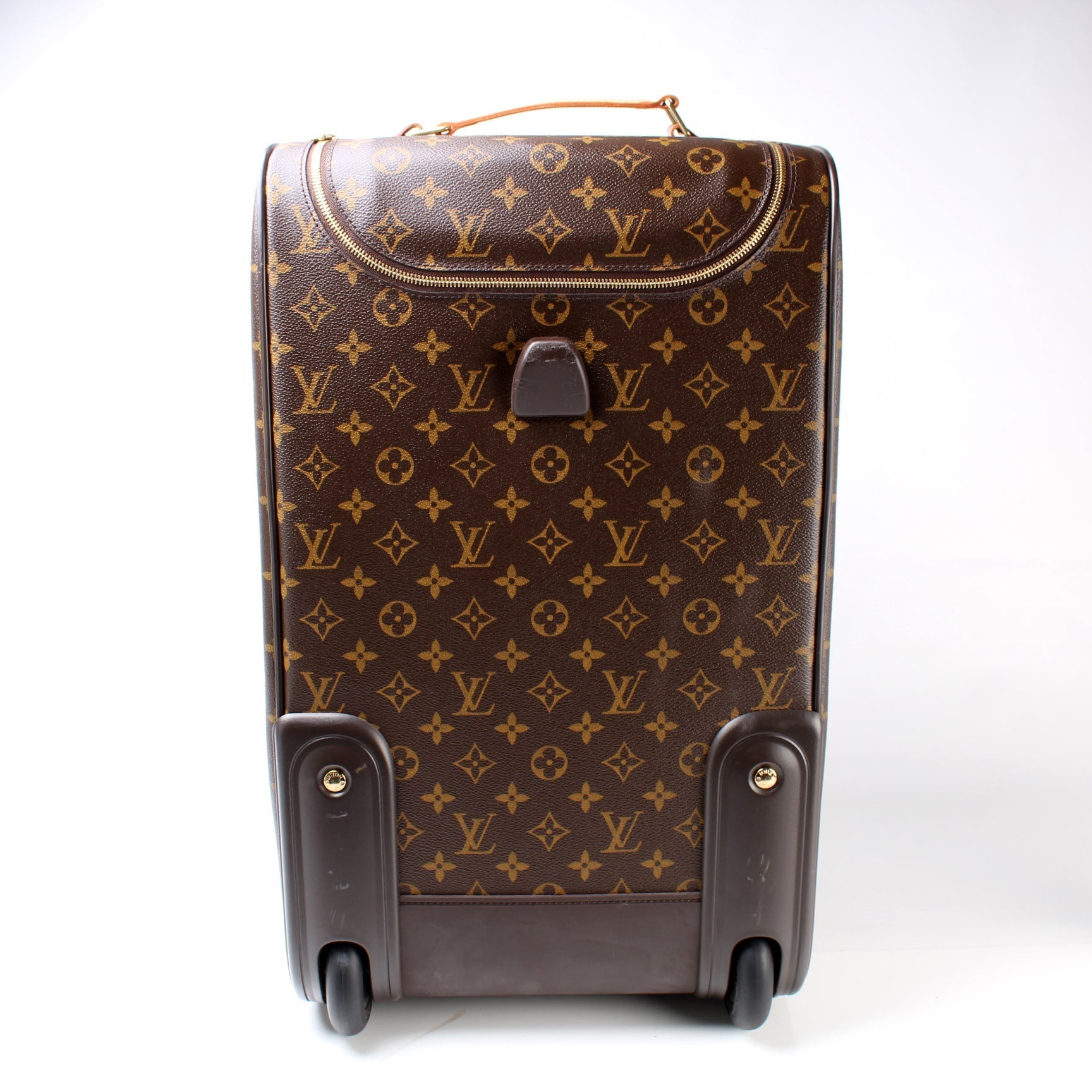 This Louis Vuitton Eole 50is eye catching bag. The exterior is in the classic Louis Vuitton Monogram coated canvas.