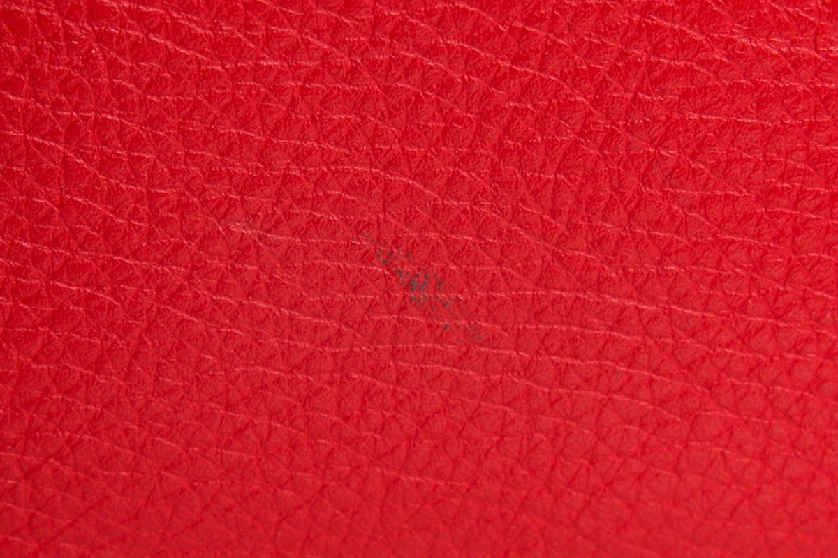 Escada red leather pouch with single compartment and zipper closure. This item is in very good condition. Has a small mark on exterior.