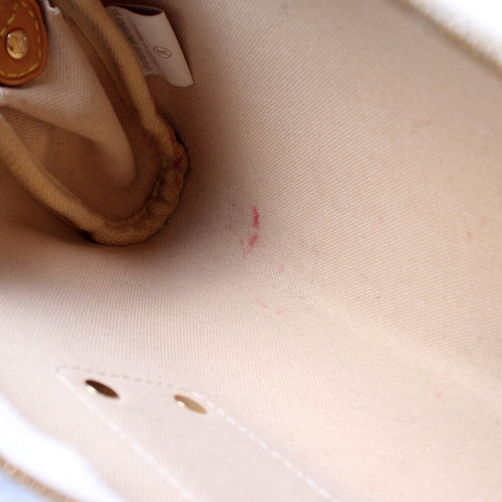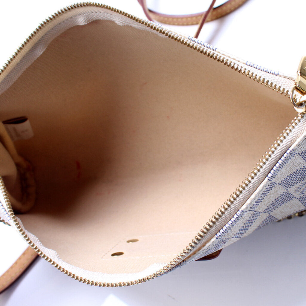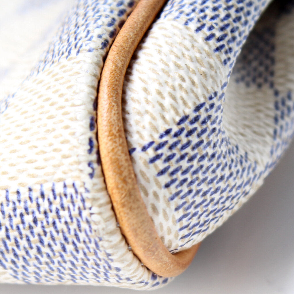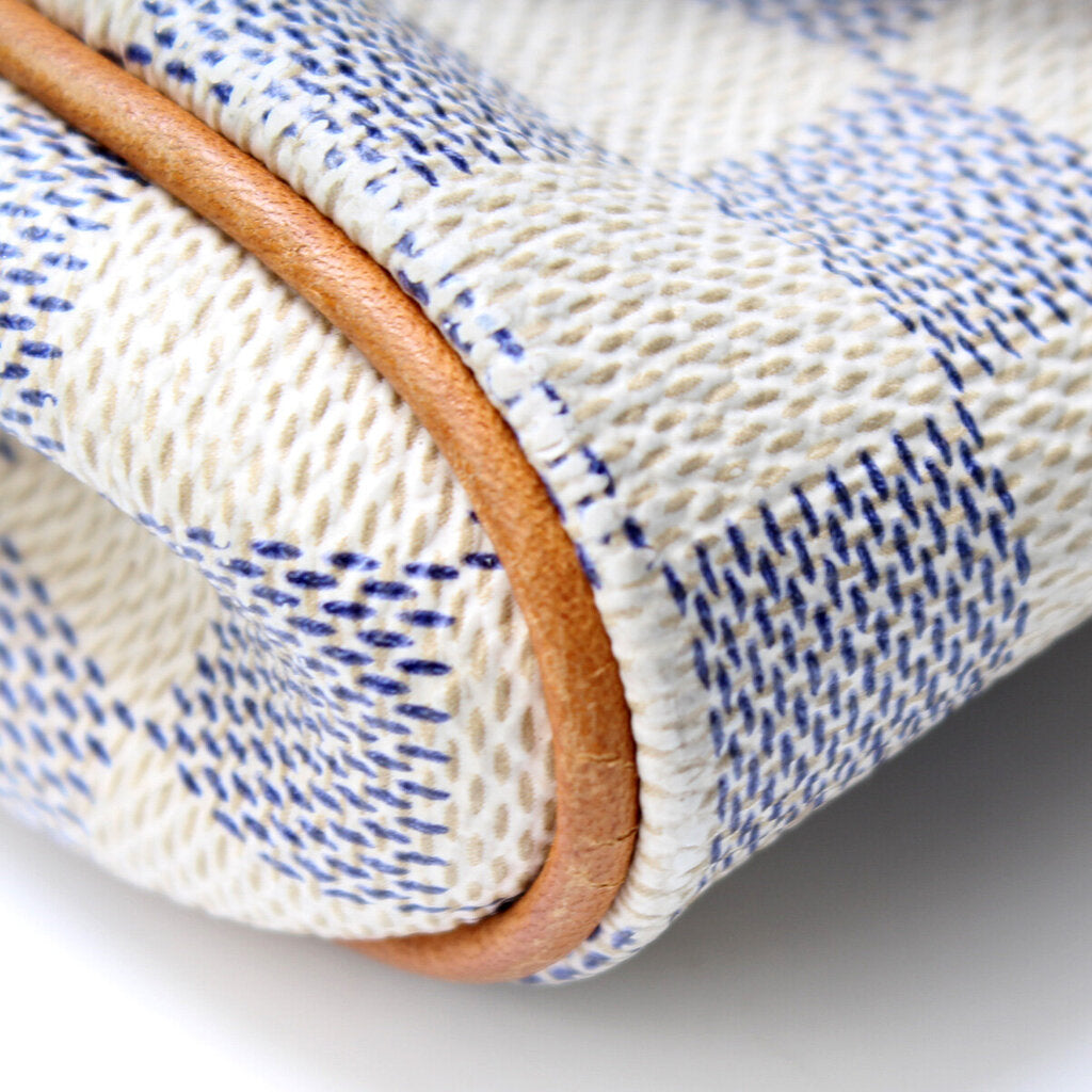 This Louis Vuitton Eva Clutchis eye catching bag. The exterior is in the classic damier azur coated canvas.
