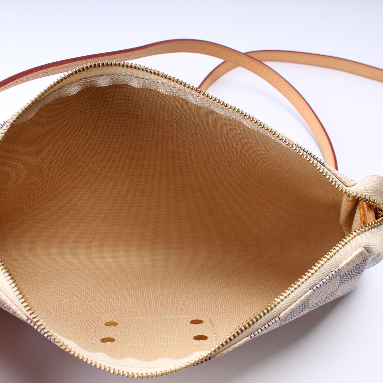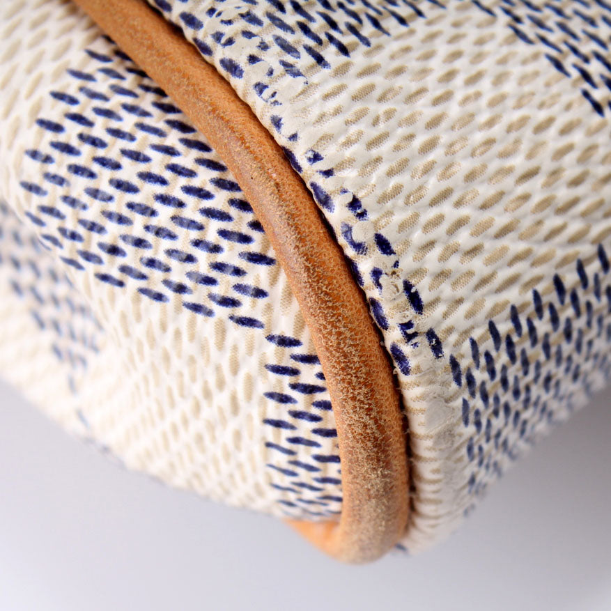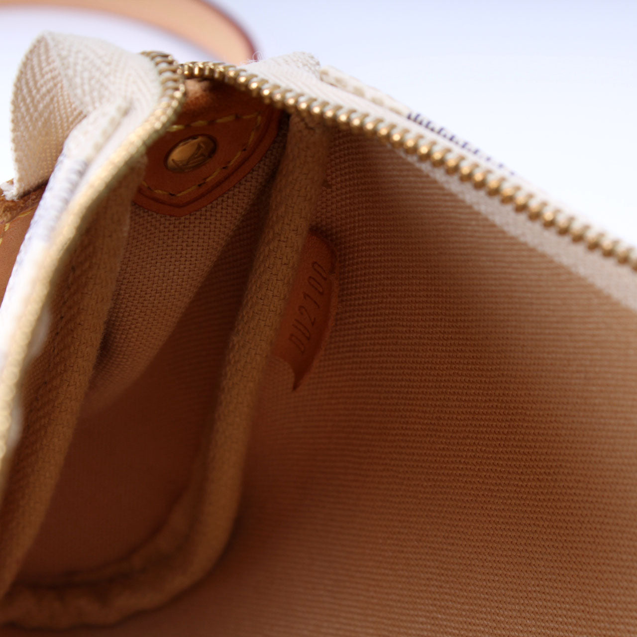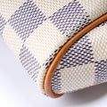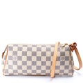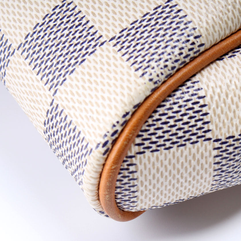 This Louis Vuitton Eva Clutchis eye catching bag. The exterior is in the classic Louis Vuitton Damier Azur coated canvas.