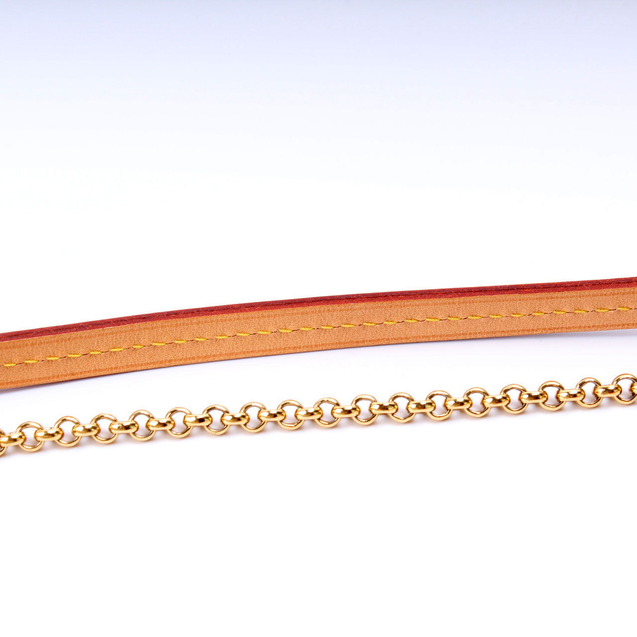Exterior: The exterior coated canvas is free of any rips or cracks. The corners and leather detail show signs of wear.