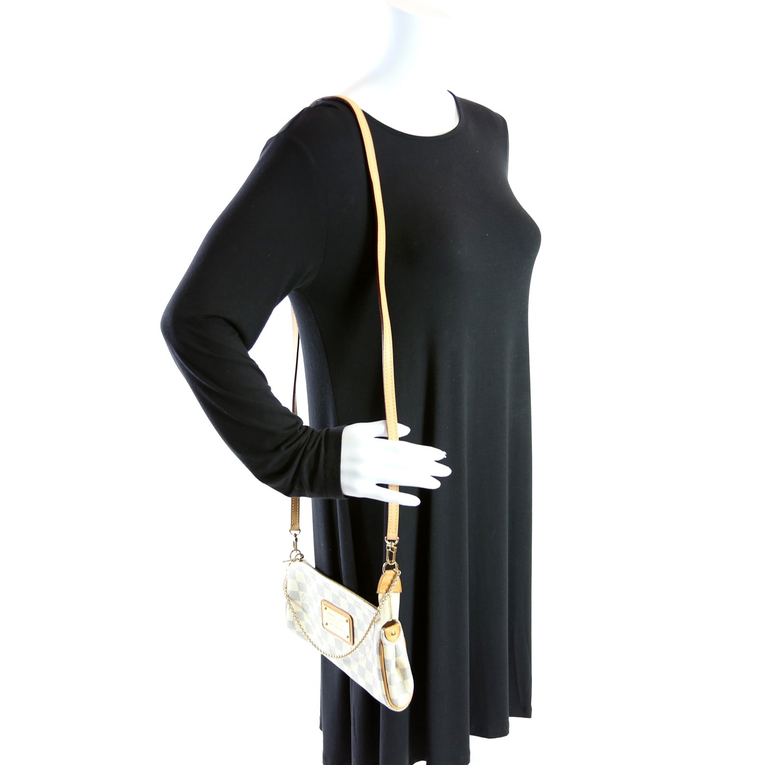 This Louis Vuitton Eva Clutchis eye catching bag. The exterior is in the classic Louis Vuitton Monogram coated canvas.