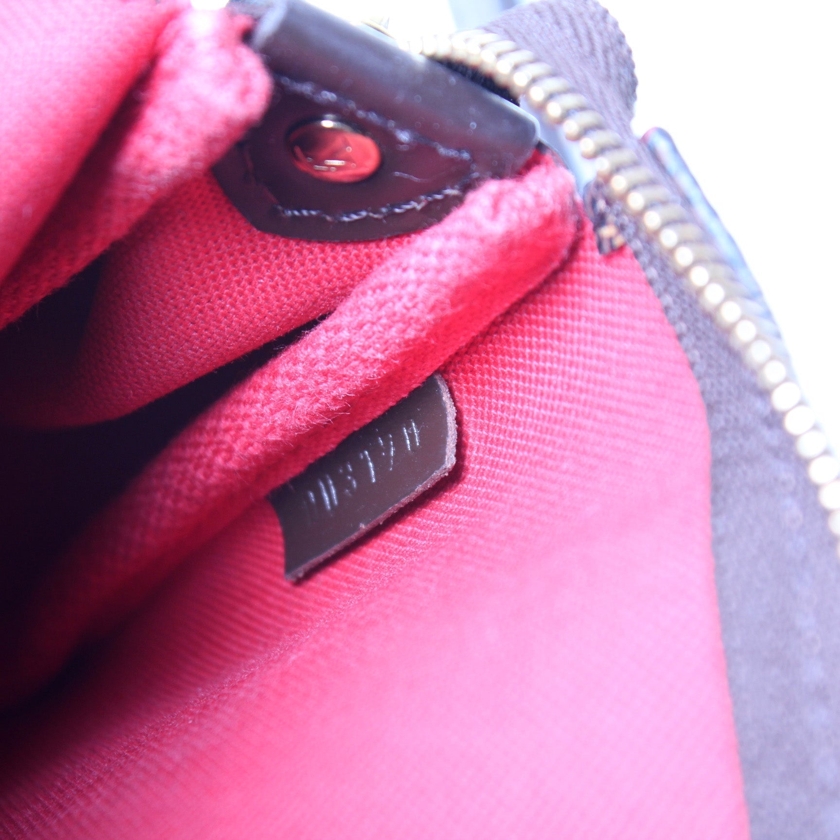 Hardware: The zipper operates properly. The hardware has discoloration.