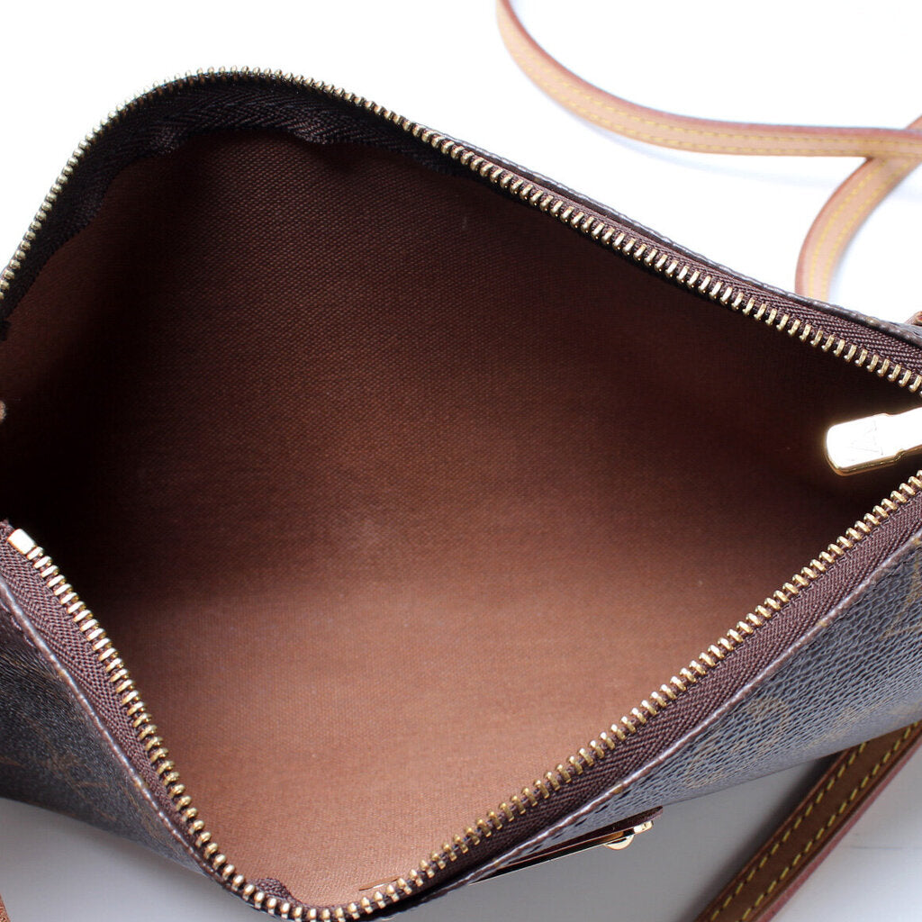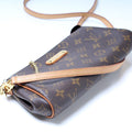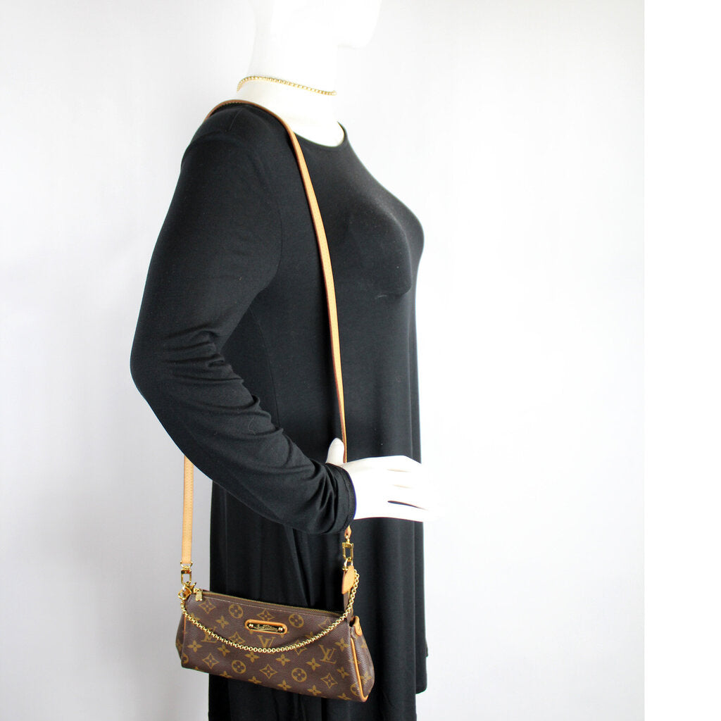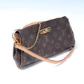 This Louis Vuitton Eva Clutchis eye catching bag. The exterior is in the classic Monogram coated canvas.