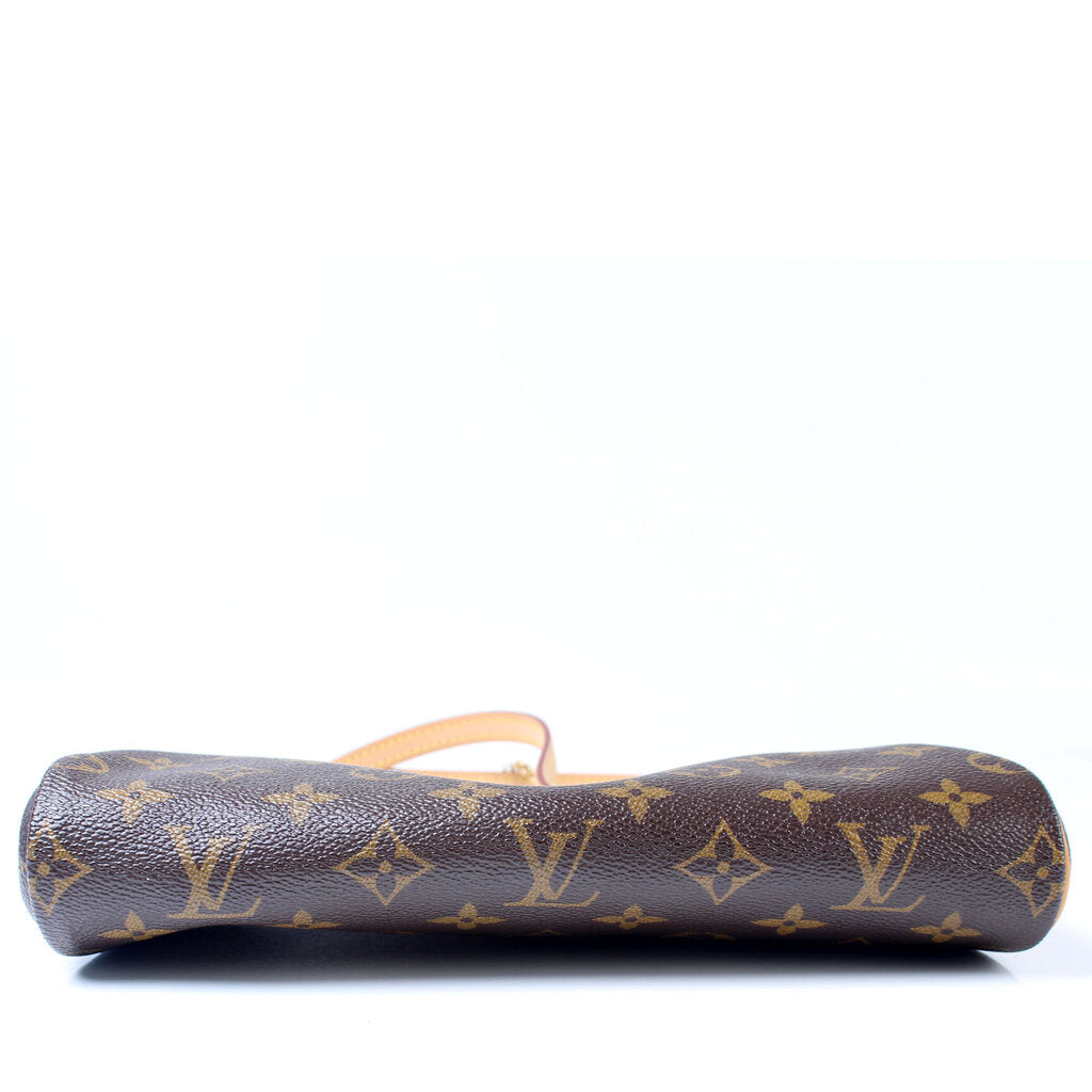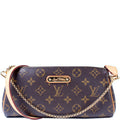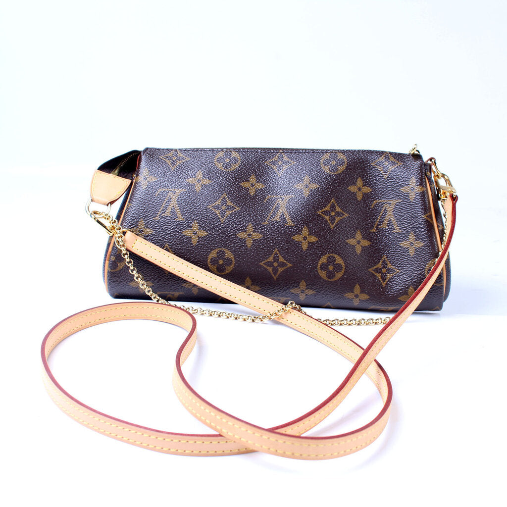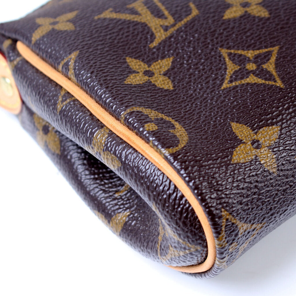 This Louis Vuitton Eva Clutchis eye catching bag. The exterior is in the classic Louis Vuitton Monogram coated canvas.
