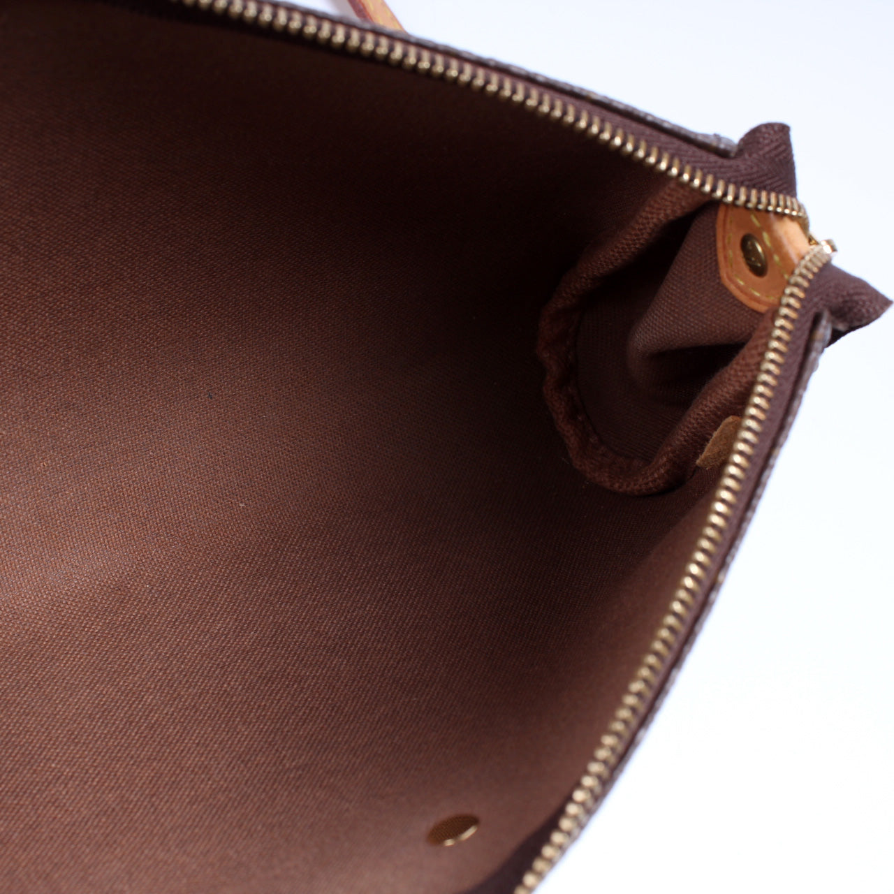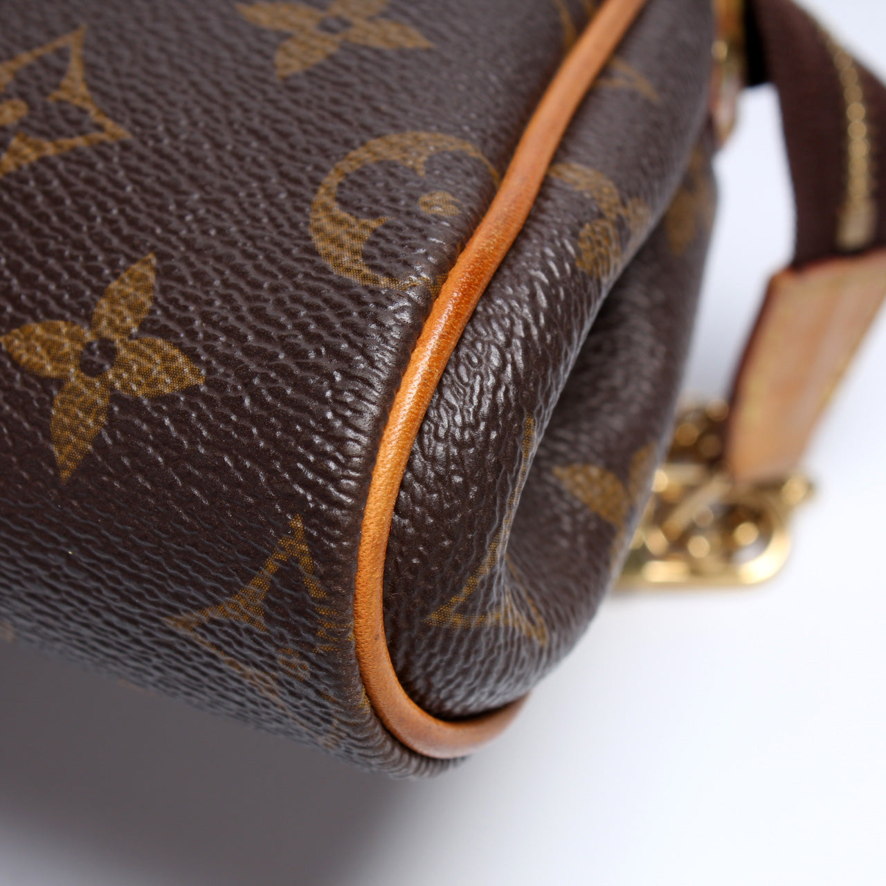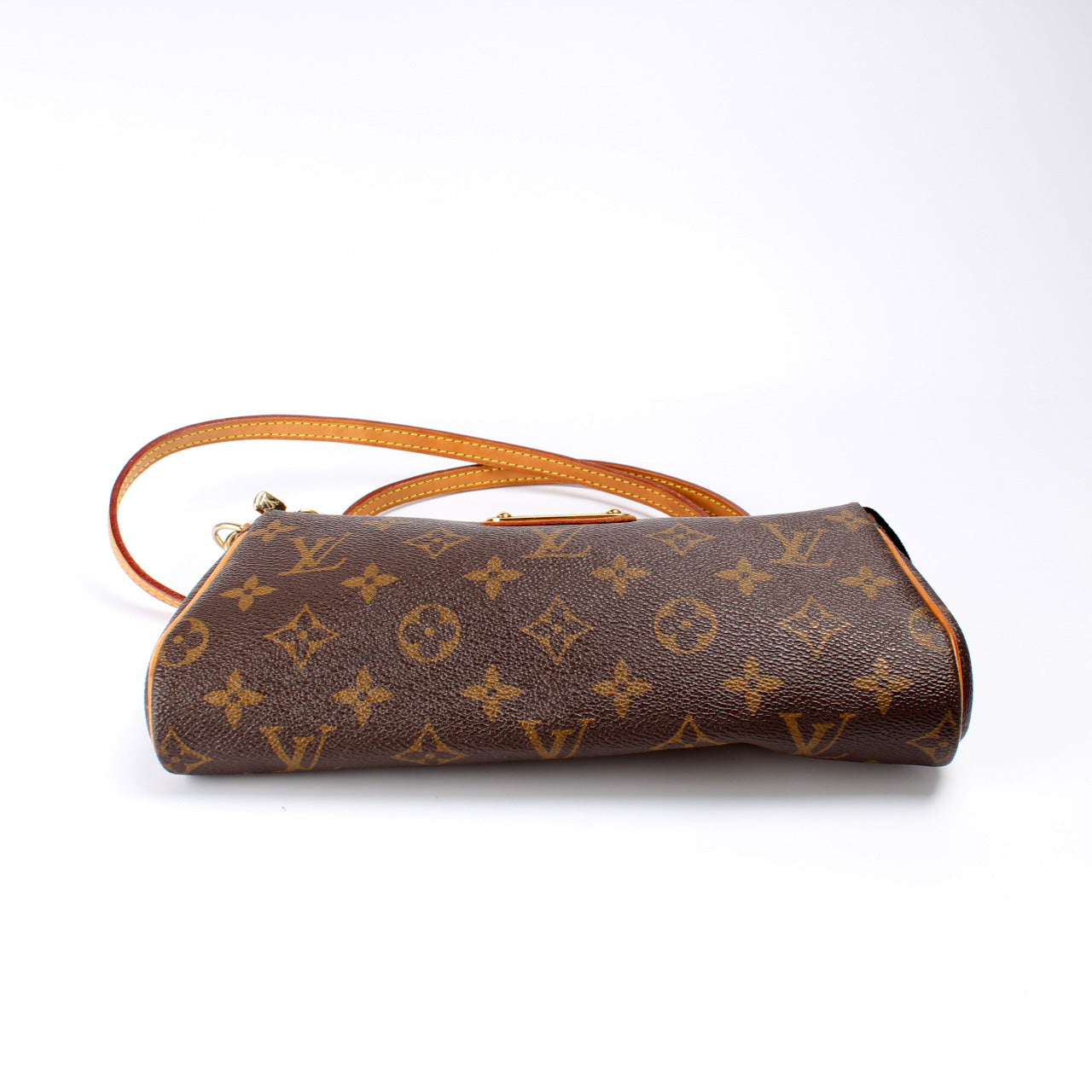 This Louis Vuitton Eva Clutchis eye catching bag. The exterior is in the classic Monogram coated canvas.