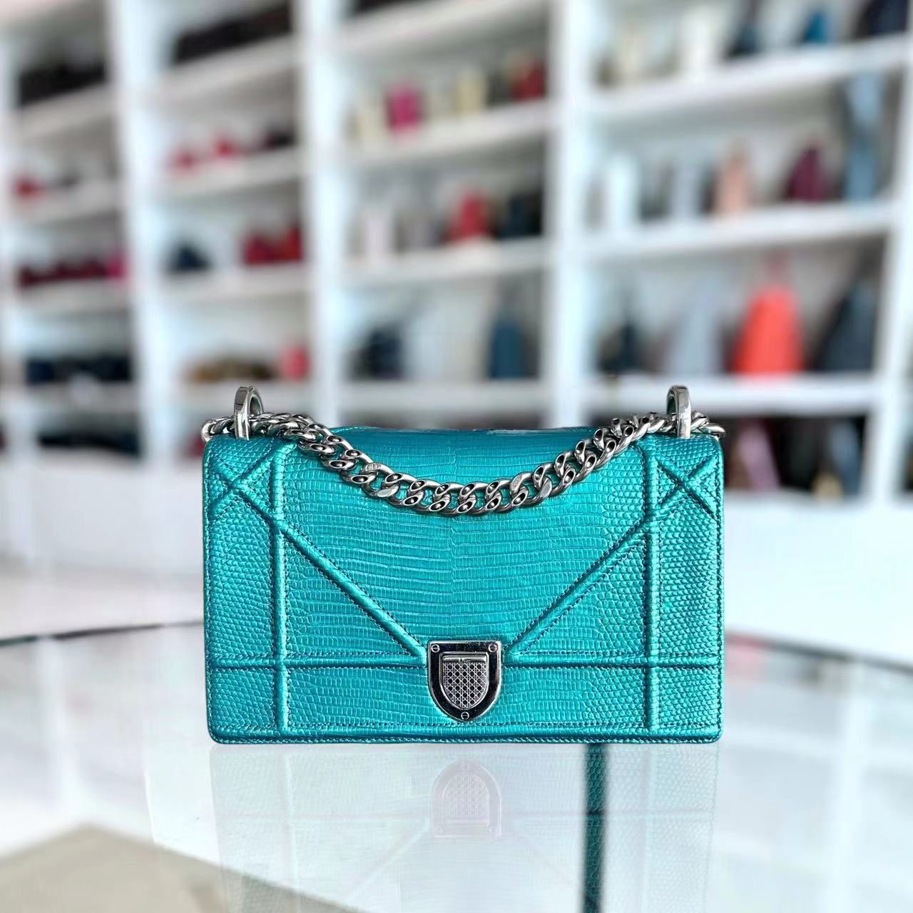 *Exotic* Diorama AMA Small Lizard Skin Green Blue Silver Hardware