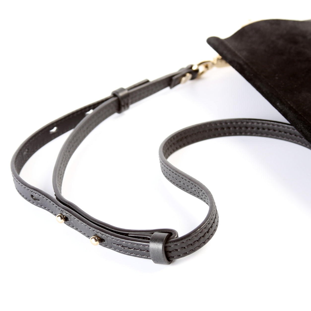 Exterior: The exterior leather has minor scuffs. The suede has wear.