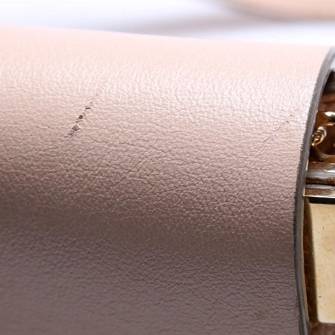 Hardware: The magnetic closure operates properly. The hardware shows wear and scuffs.