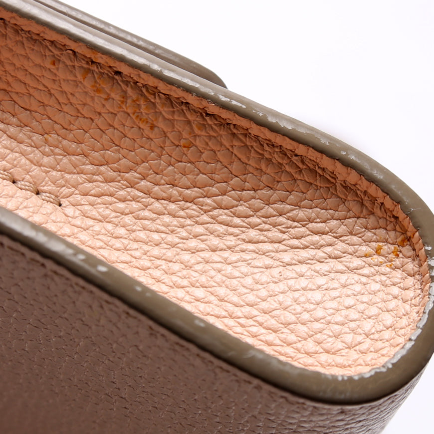 Exterior: The exterior leather is free from tears and rips. The exterior leather shows some light scuffs and some light discoloration from metal under flap.