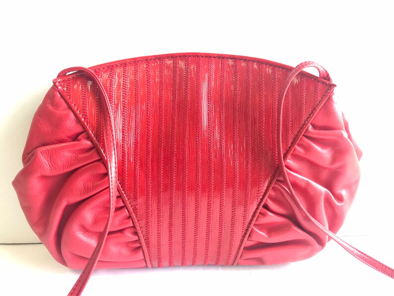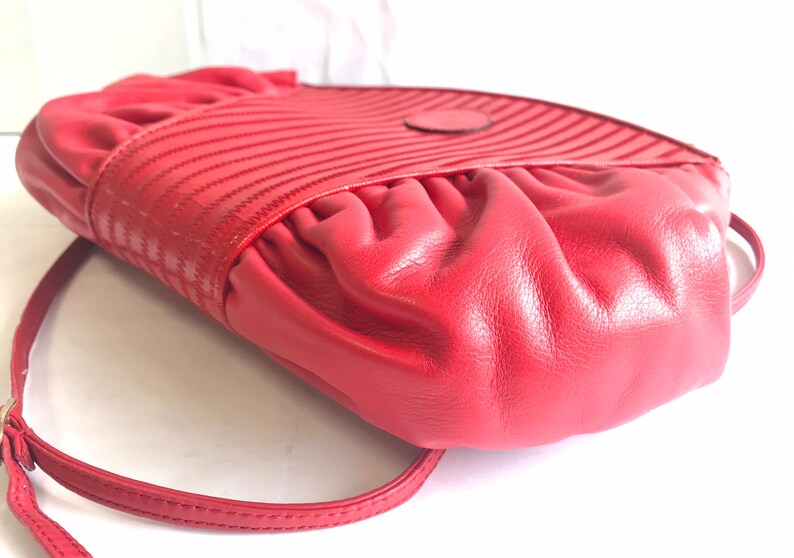Can be a clutch, pouch bag as well For all FENDI vintage lovers, this unique and rare vintage masterpiece is right for you! Cute form in round shape in red patent enamel and soft nappa leather combo.