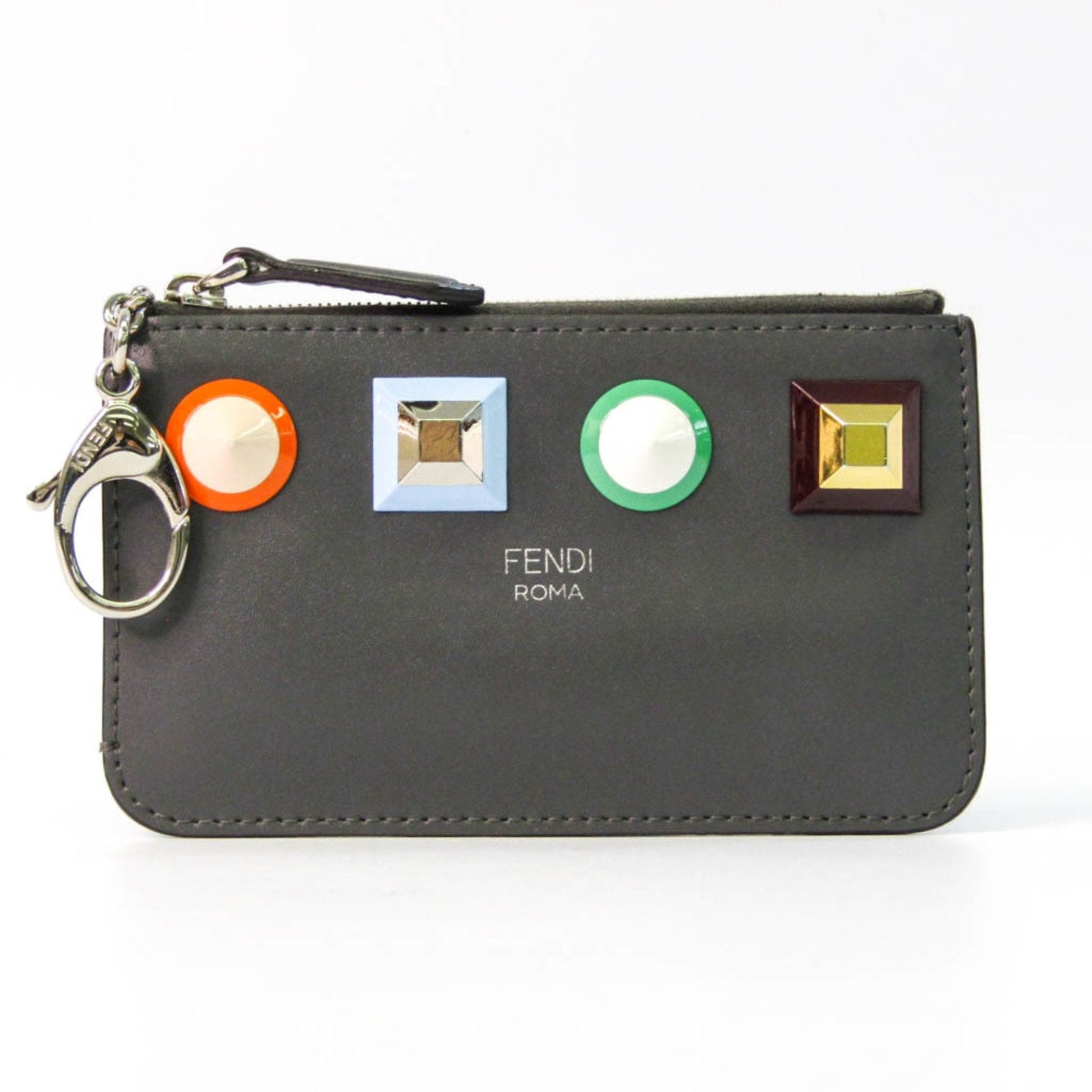 Fendi 8AP151SRO Women's Leather Coin Purse/coin Case Gray