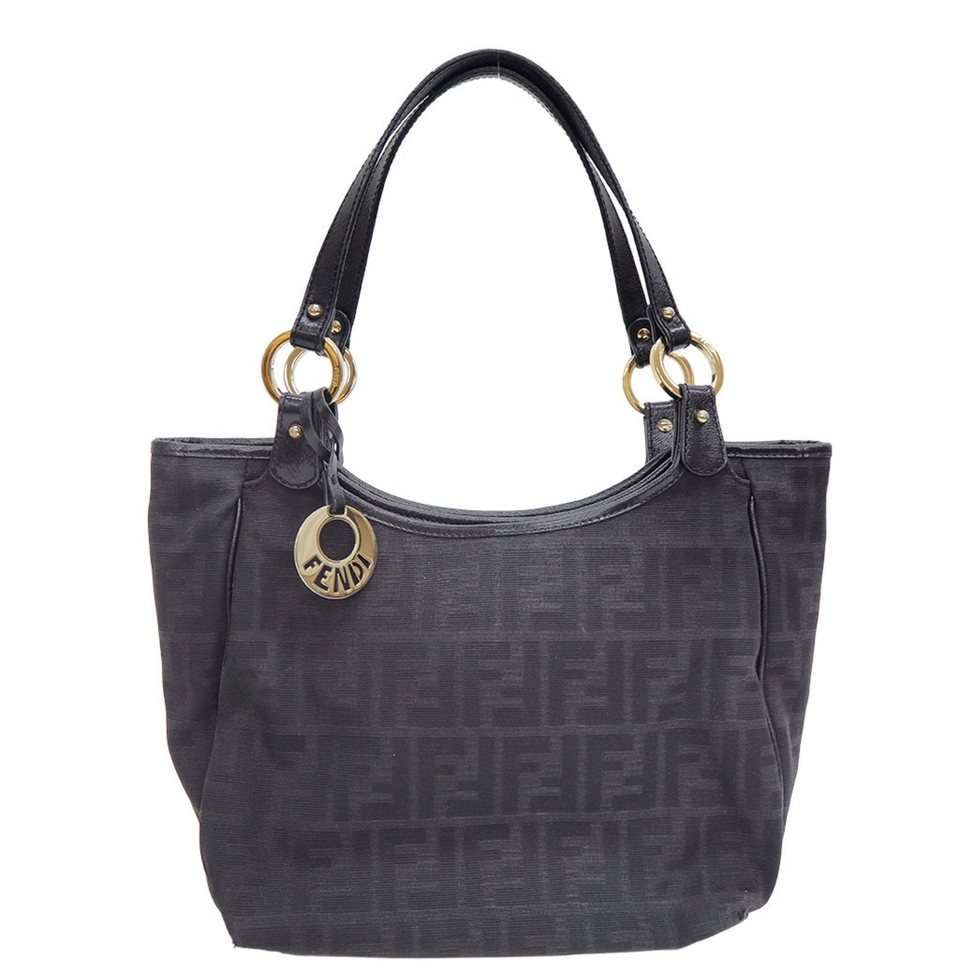 FENDI 8BH156 Zucca pattern tote bag black canvas x enamel