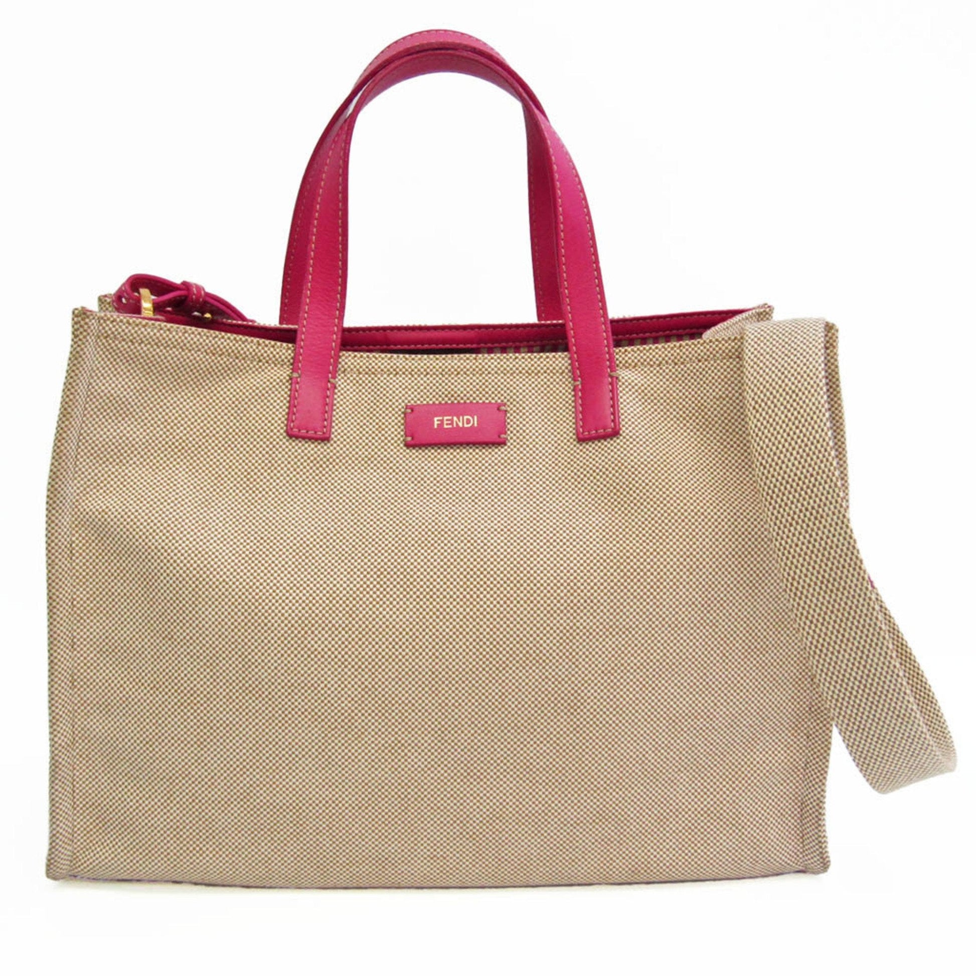 Fendi 8BH252 Women's Canvas,Leather Handbag,Shoulder Bag Beige,Pink