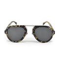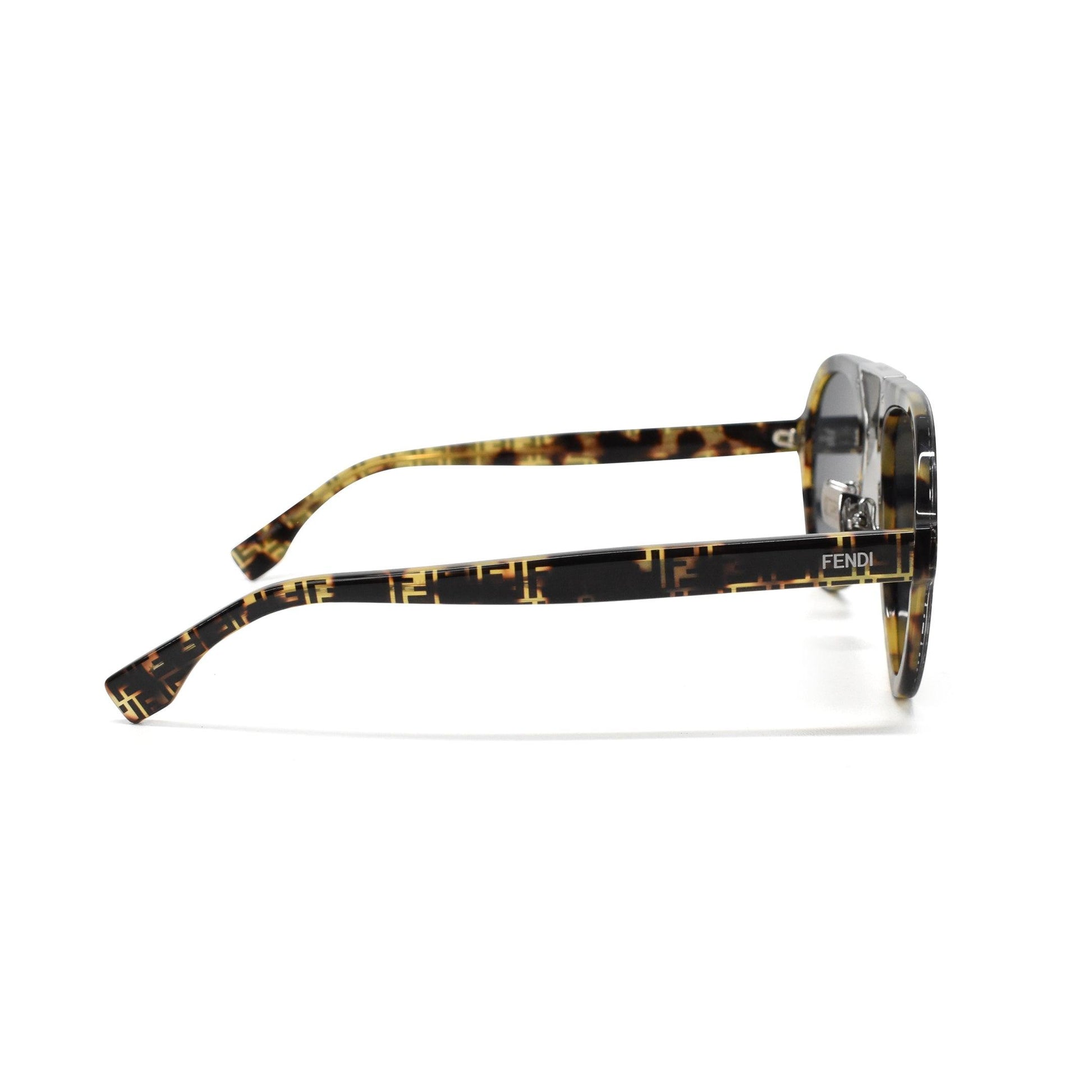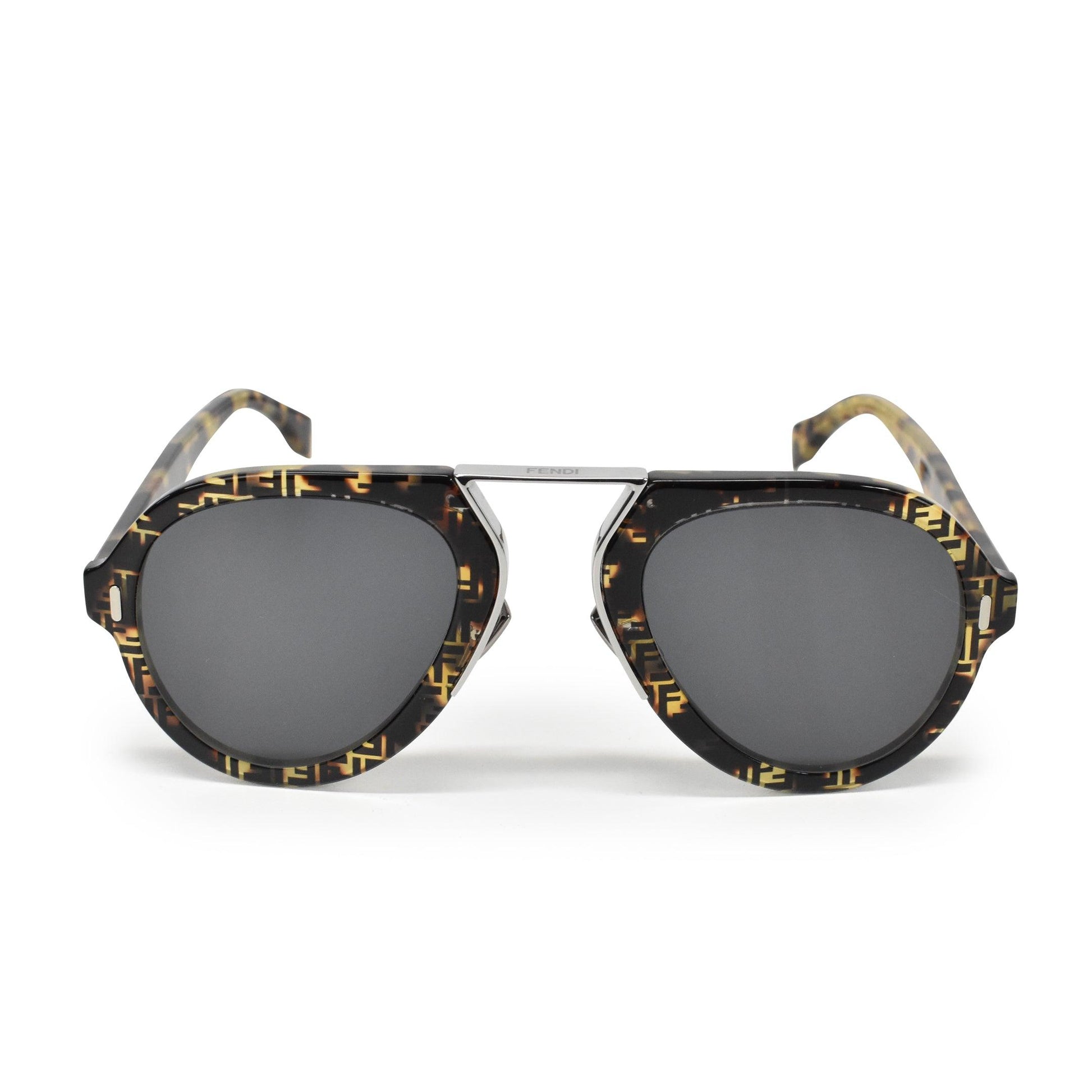 Fendi square aviator sunglasses in tortoiseshell acetate with black monogram Zucca print and silver hardware.