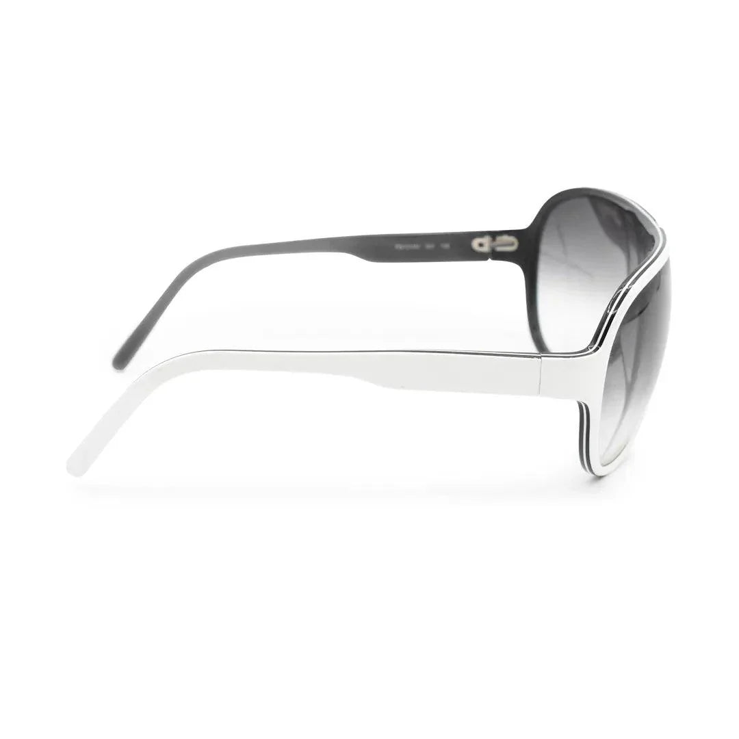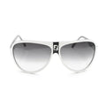 Fendi aviator sunglasses in black and white. Features black ombre lenses, 'FF' logo in white on nose bridge, and embossed silver logo on left armband.