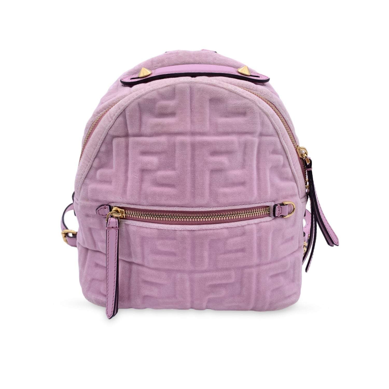 The Certificate Will Be Provided At Further Cost Gorgeous Fendi Mini Backpack Carfted In Pink Velvet With Embossed Ff Monogram Pattern.