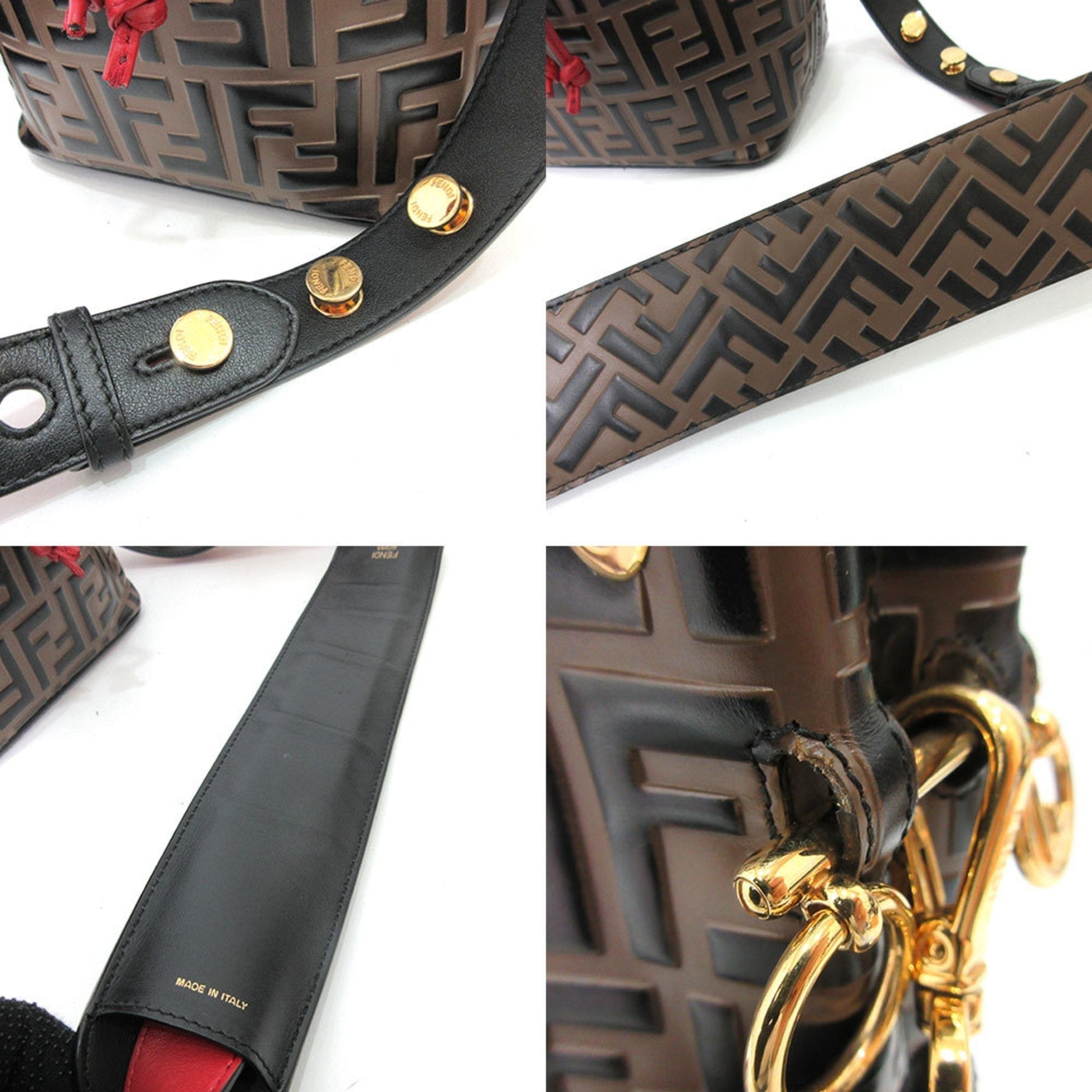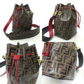 Fendi Bag Montresor Drawstring Shoulder Khaki x Red Zucca Semi-Shoulder Women's Leather FENDI