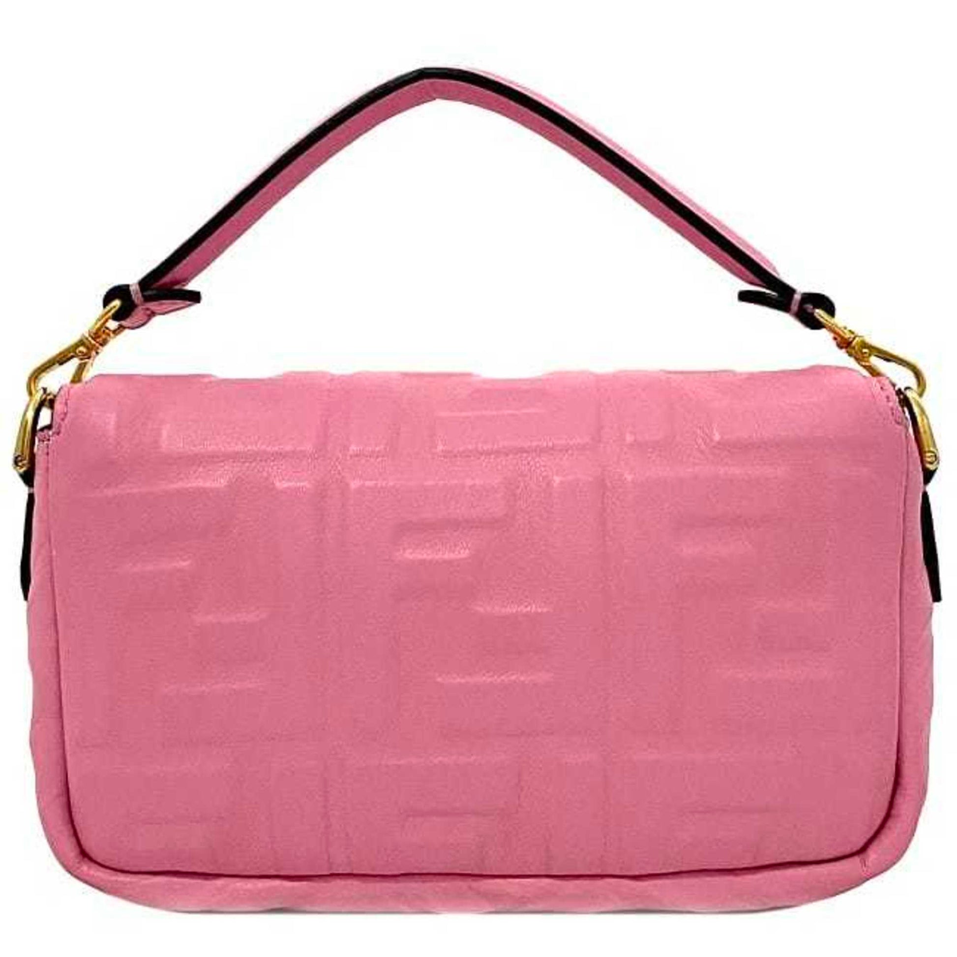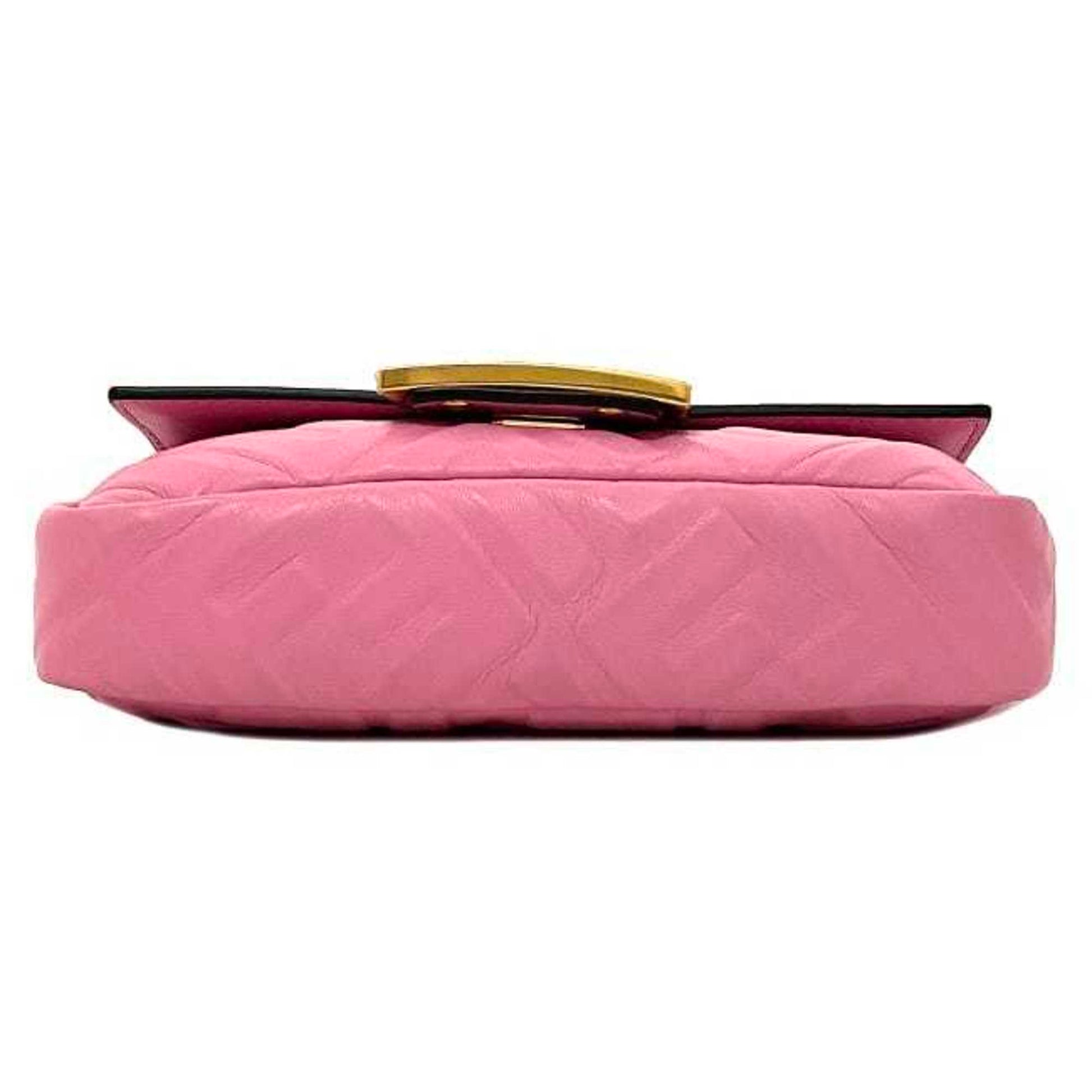 Fendi Baguette Small Pink Gold 8BS017 Leather GP FENDI Shoulder Bag FF Embossed Ladies Chain