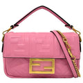 FENDI Baguette Small Pink Gold 8BS017 Leather GP Shoulder Bag FF Embossed Ladies Chain