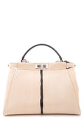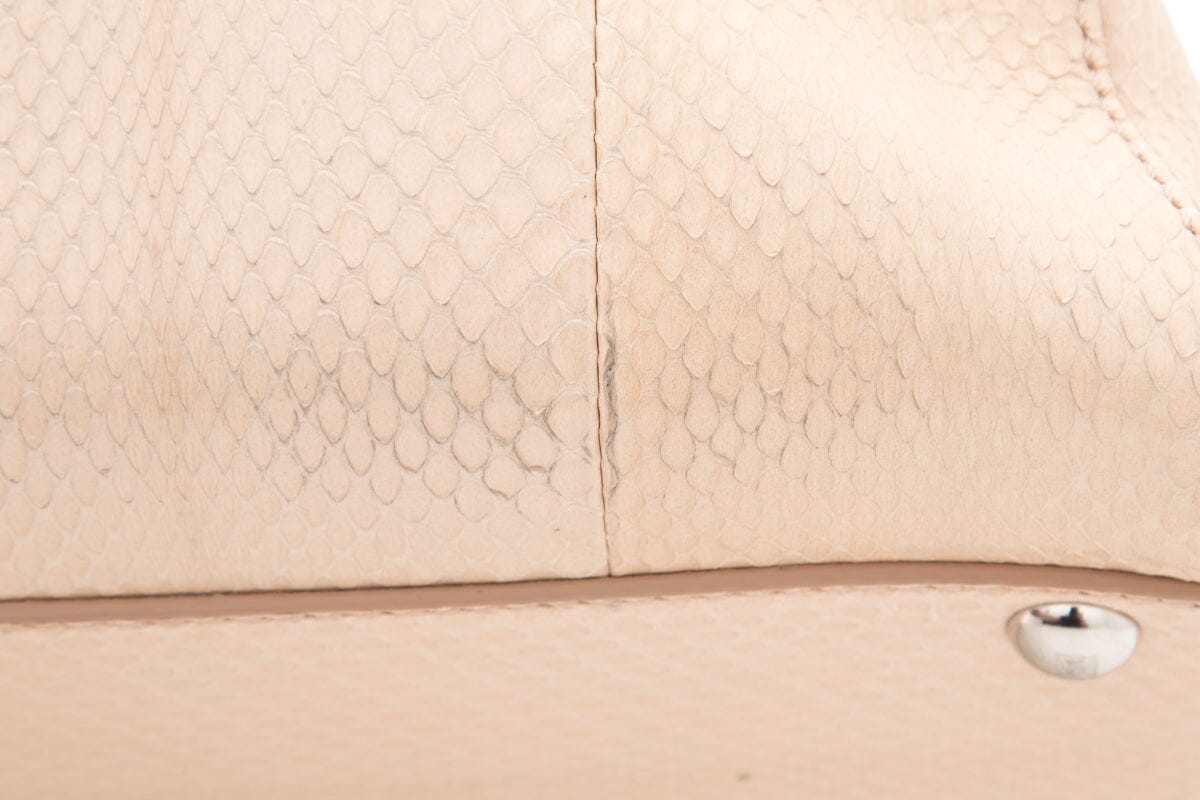 Fendi Beige Peekaboo Snake Skin Bag with Cross Body Strap. This item is in good condition; some marks and discoloring on exterior and a small white mark on interior lining.
