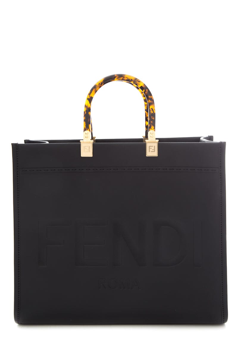 Fendi Black Leather Sunshine Shopper with Extra FF Strap. This item is in excellent condition.