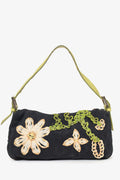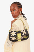 Fendi Black/Lime Green Fabric/Python Floral Embroidered Mama Baguette Shoulder Bag (As Is)