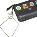 Fendi Wallet in black leather with a top zip closure with clip pull and a geometric square and multicolour shapes studs. Includes box.