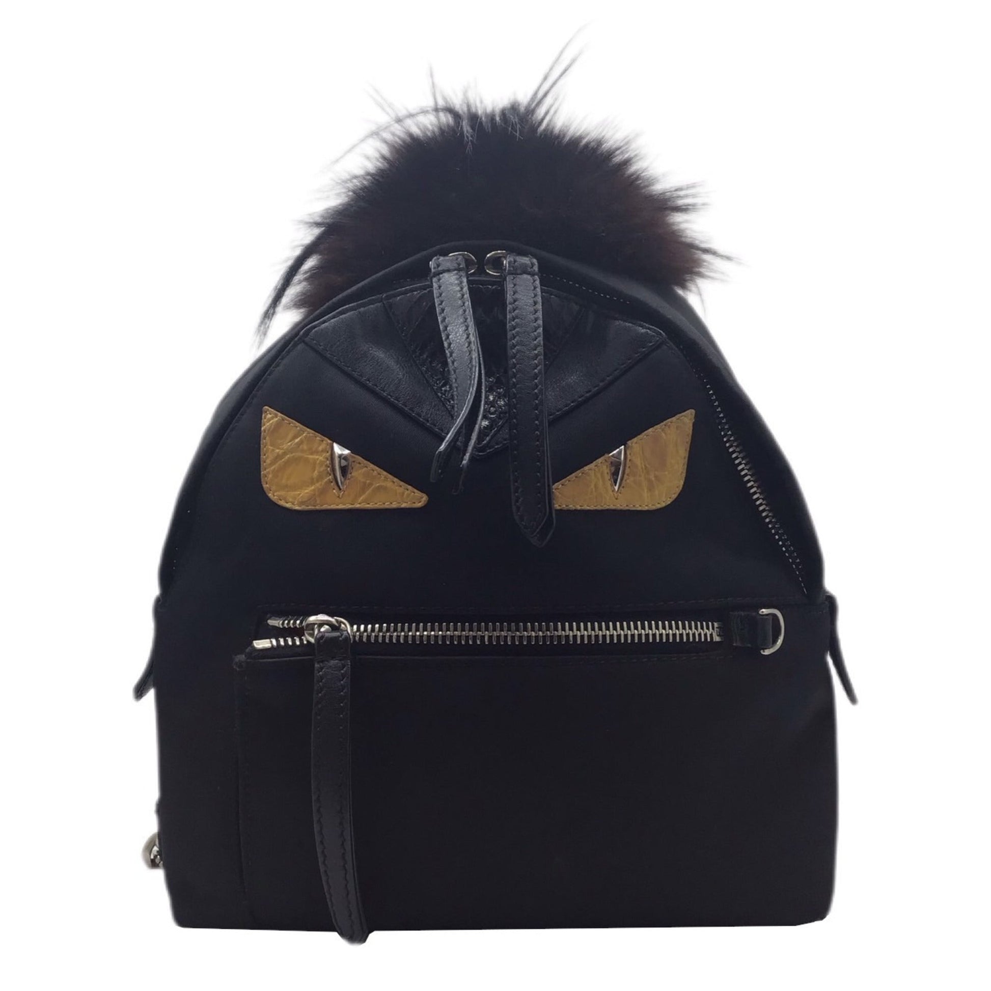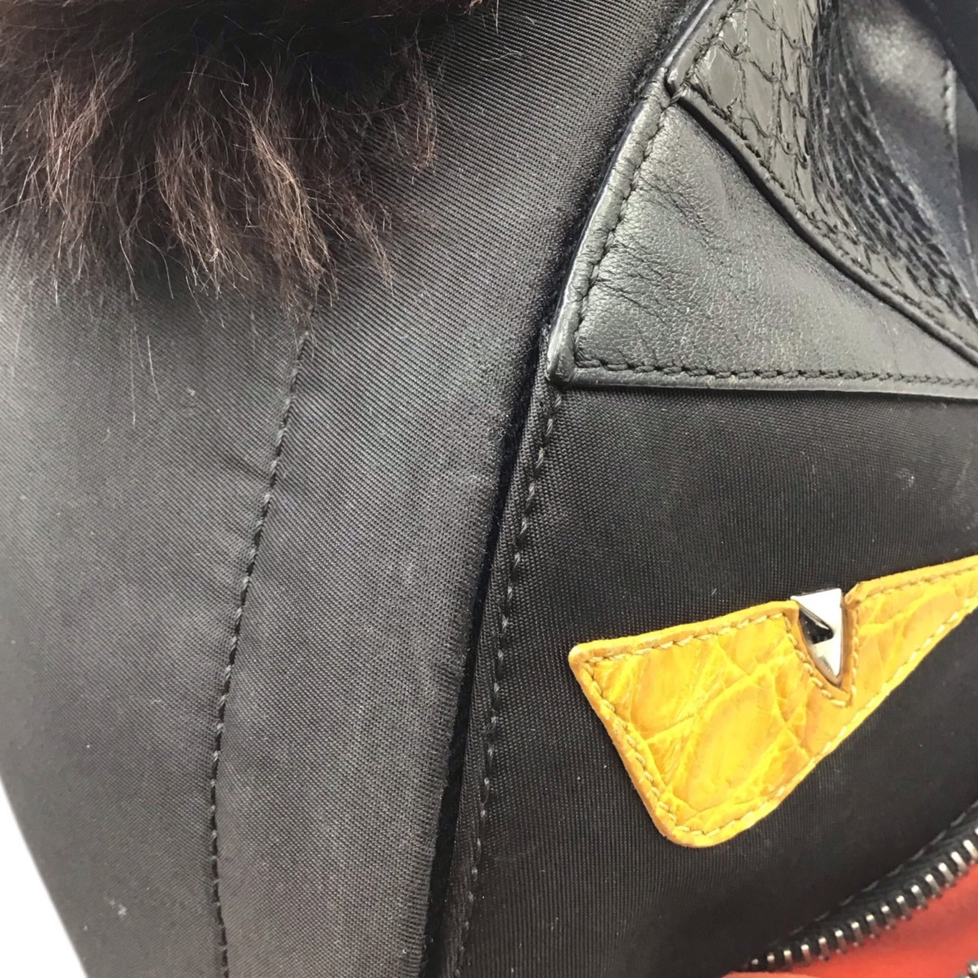 FENDI Bugs Eye 8BZ038 Backpack Nylon Black Pom Rucksack Ladies Men's Unisex