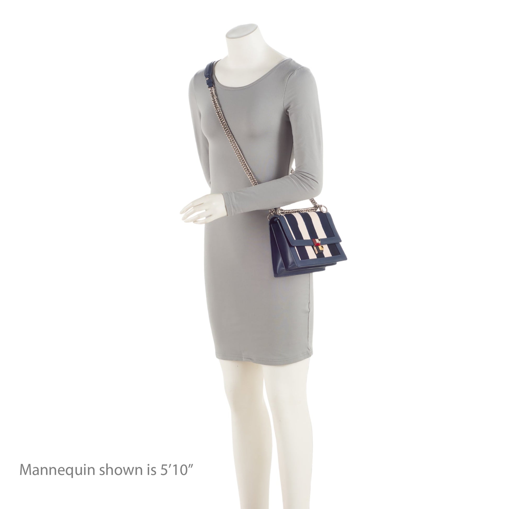 Fendi Calfskin Striped Canvas Kan I Small Shoulder Bag (SHF-yQIdt1)