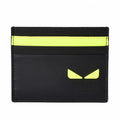 Fendi Card Case Business Holder FENDI Leather I SEE YOU Black Fluo Yellow 7M0164