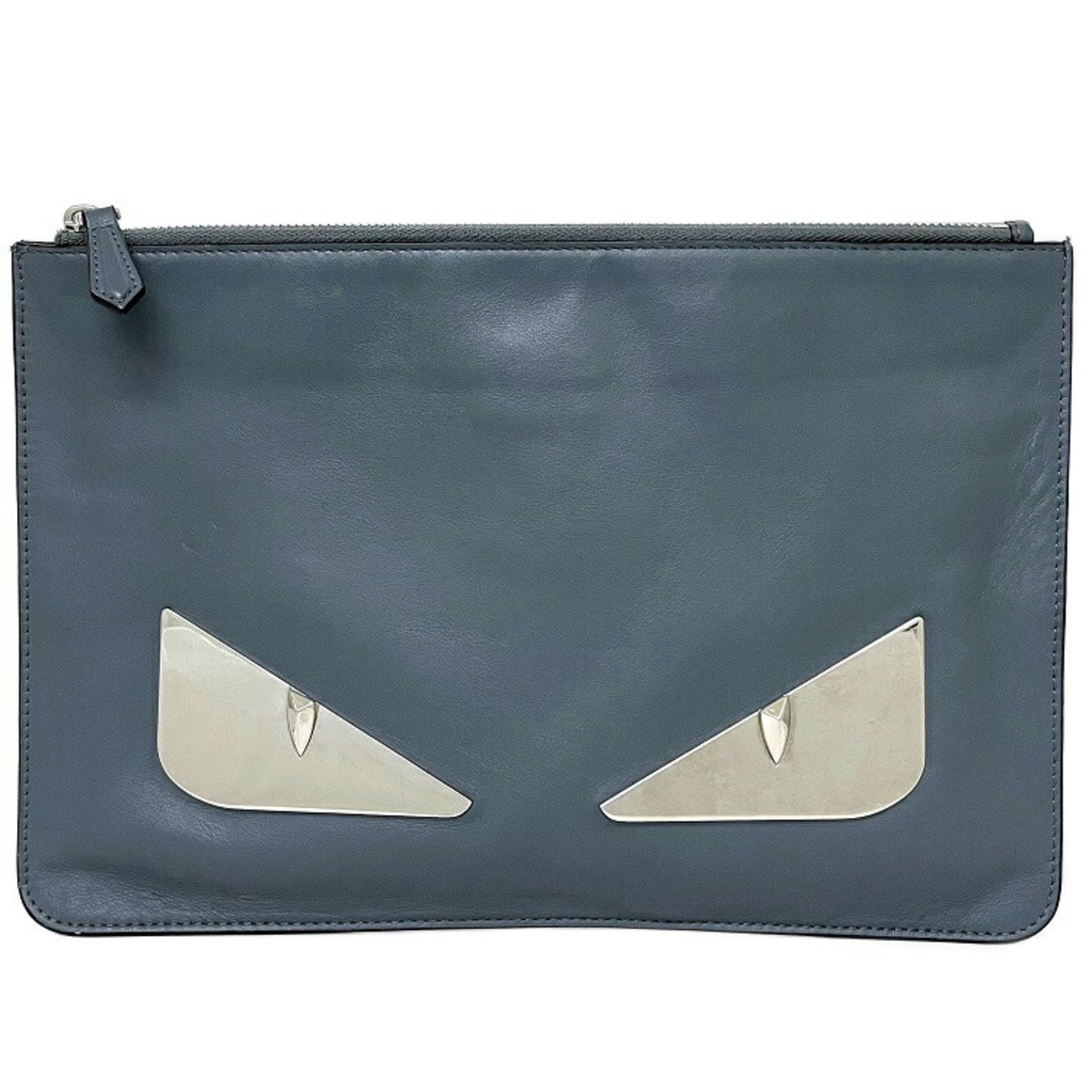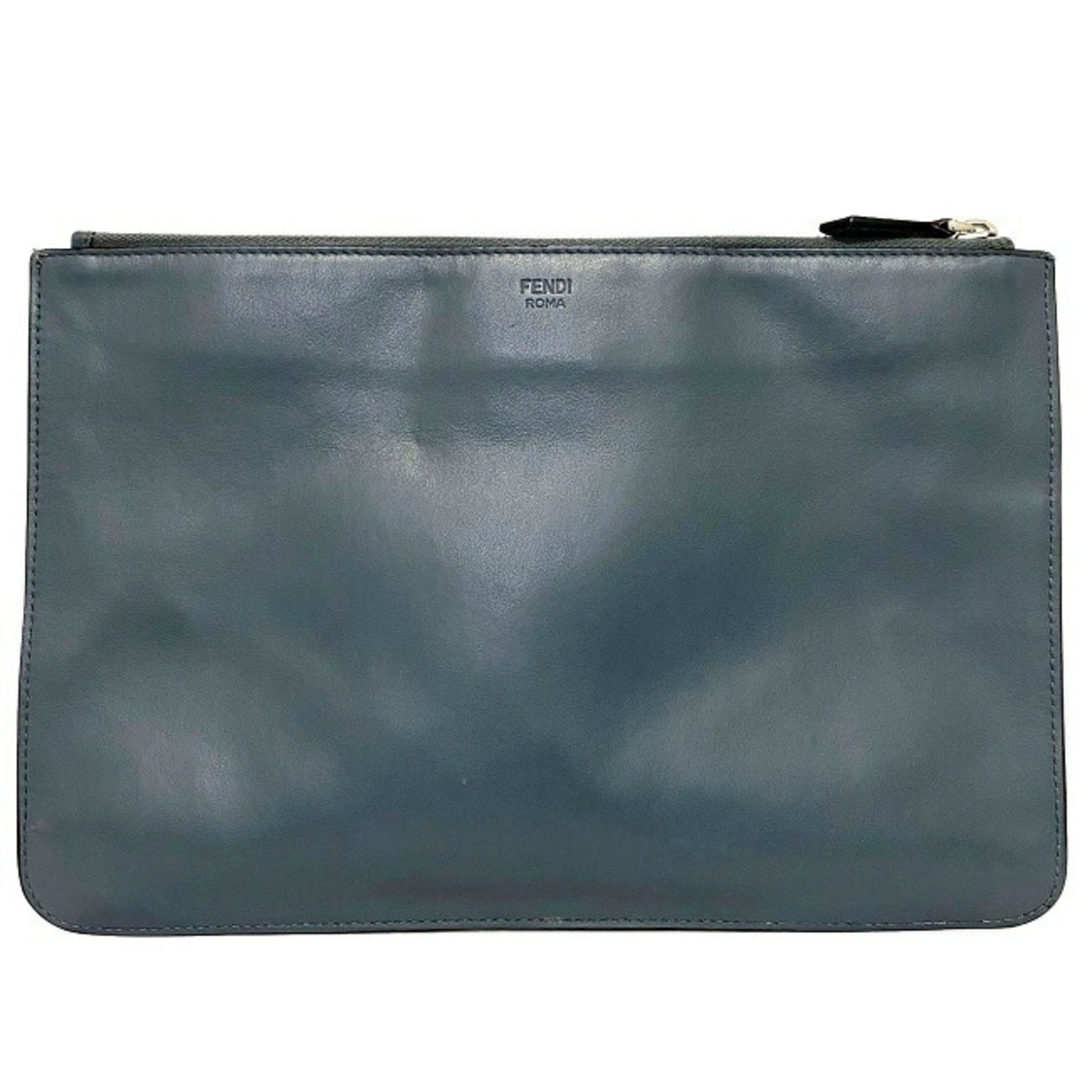 Fendi Clutch Bag Gray Silver Mon 7N0078 Plate Pouch Second Leather FENDI Women's Men's Dual
