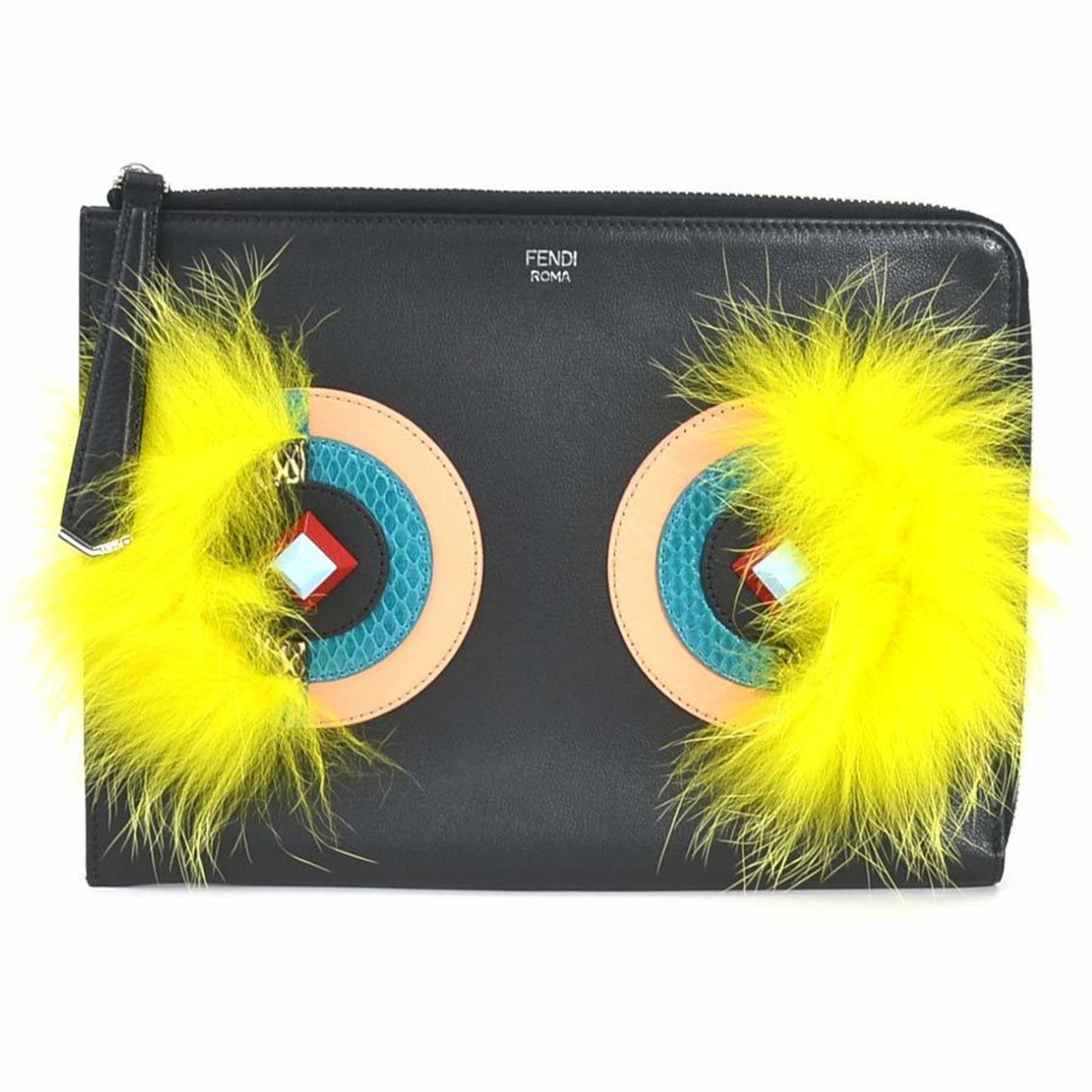 Fendi Clutch Bag Monster Leather/Fur Black/Multicolor Unisex e55994g