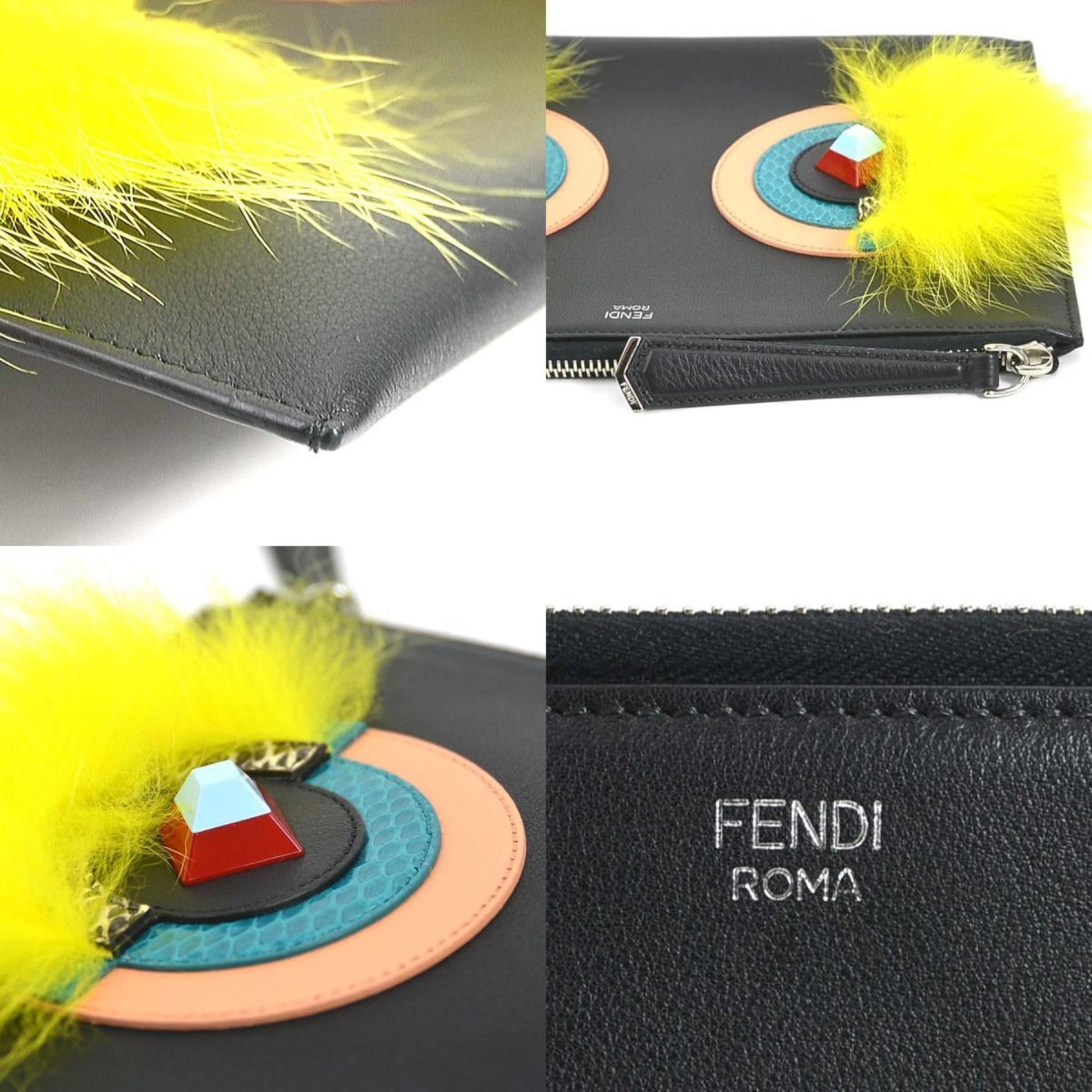 FENDI Clutch Bag Monster Leather/Fur Black/Multicolor Unisex e55994g