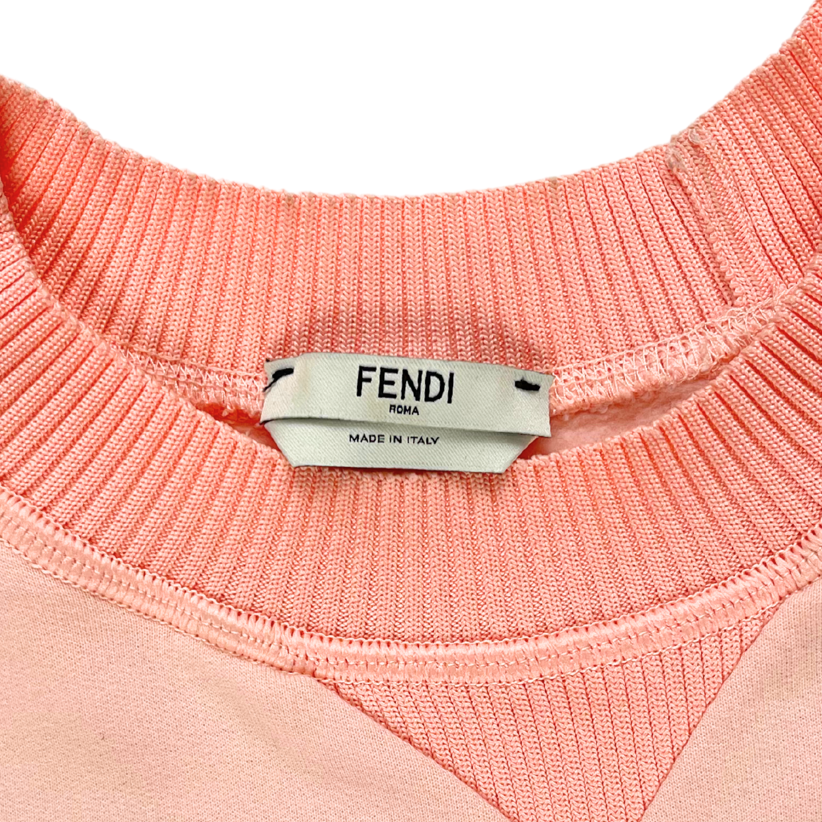 Fendi oversized crewneck sweatshirt in light pink cotton with a large metallic purple logo graphic on the chest with beaded detailing.