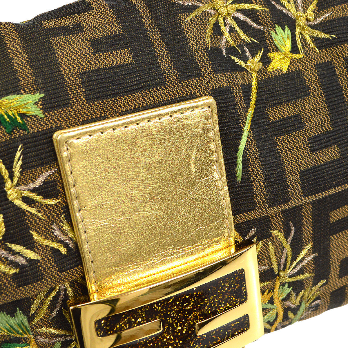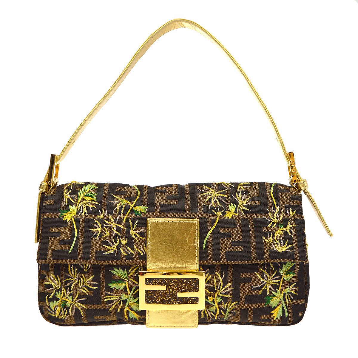 Fendi Embroidered Zucca Baguette Handbag Brown Gold