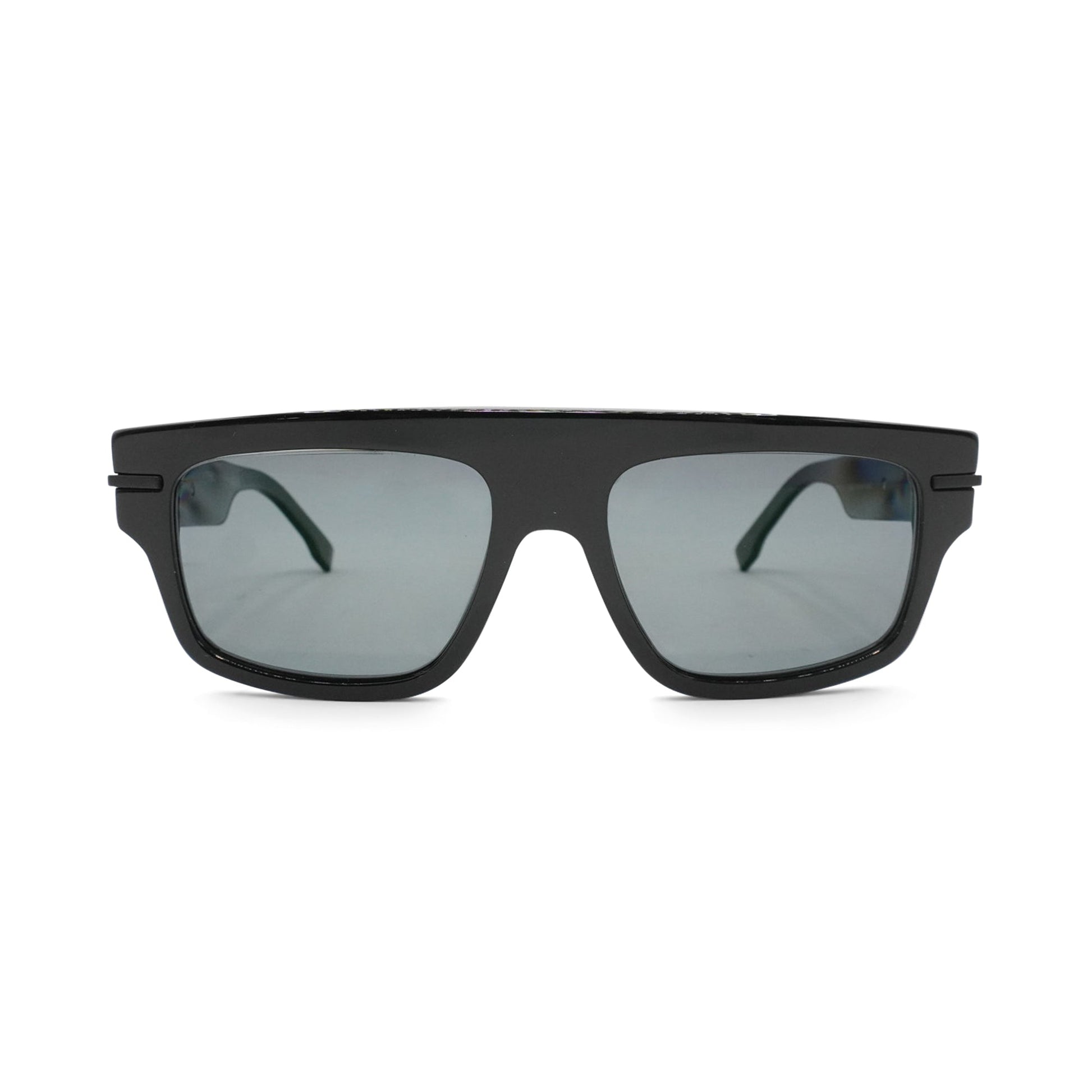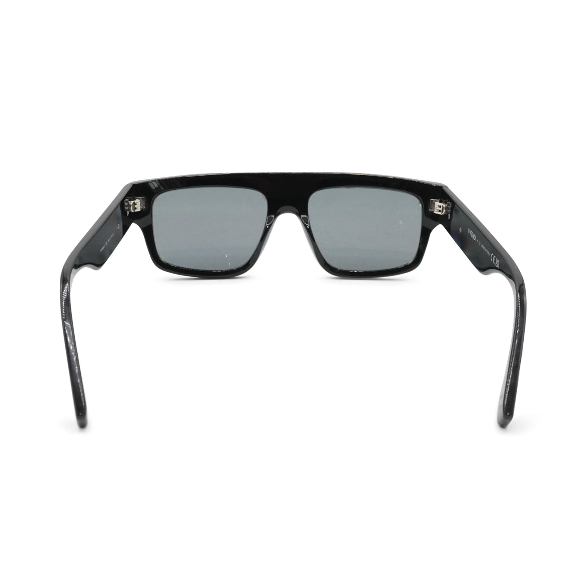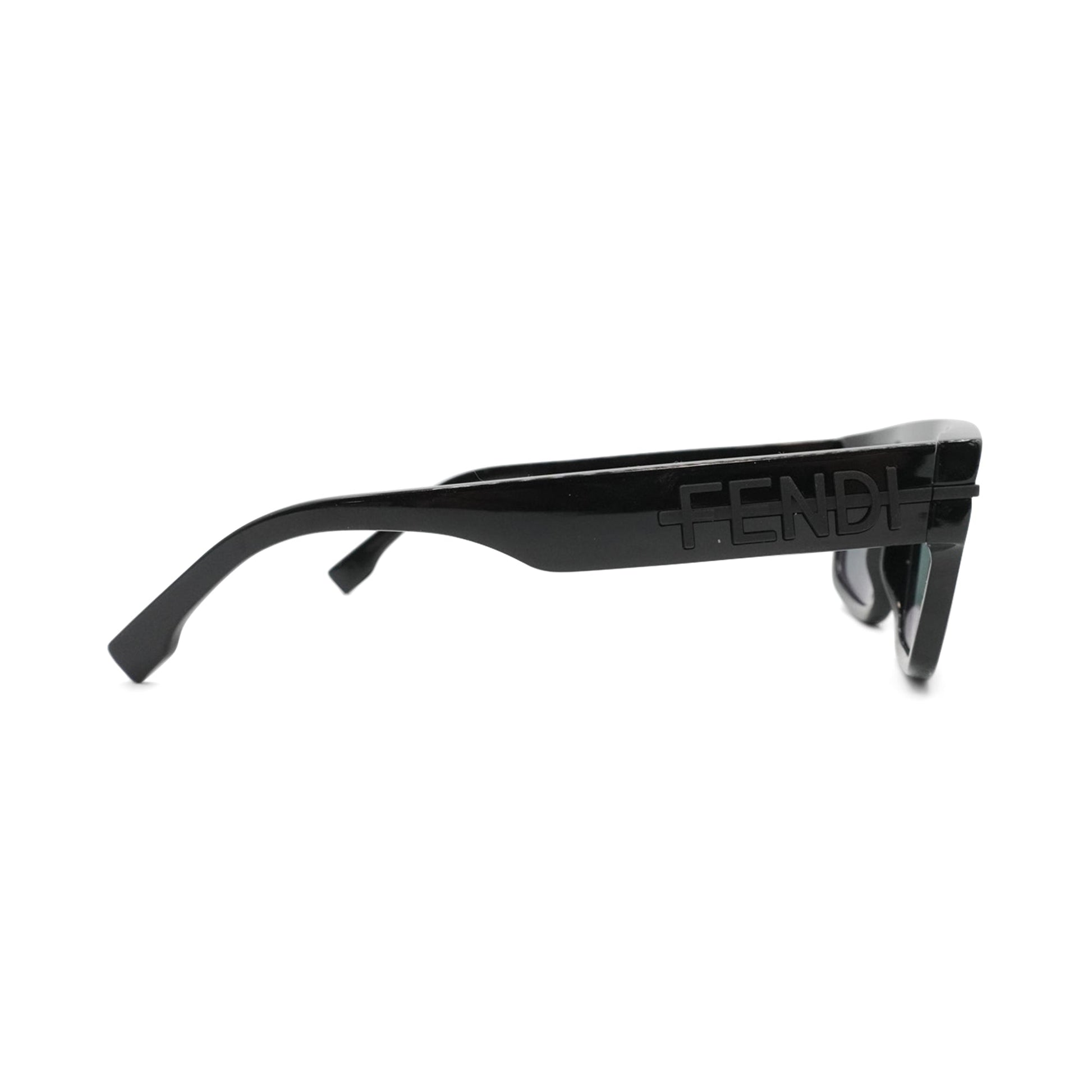 Fendi 'Fendigraphy' sunglasses in black acetate with a flat top lens and a matte black 'FENDI' logo on the arms.