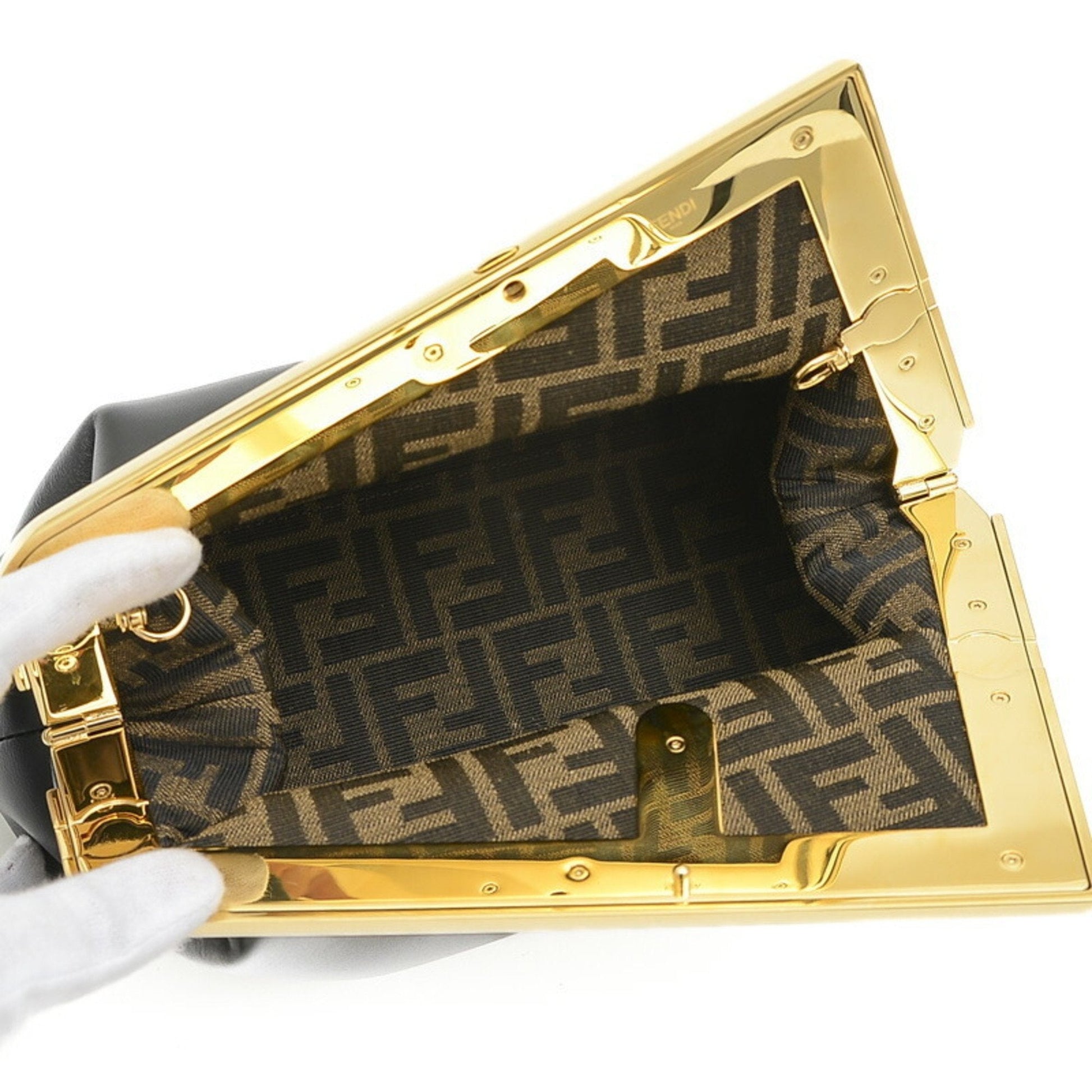 Fendi First Midi 2Way Shoulder Bag Clutch Leather Black 8137
