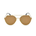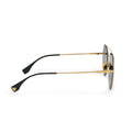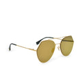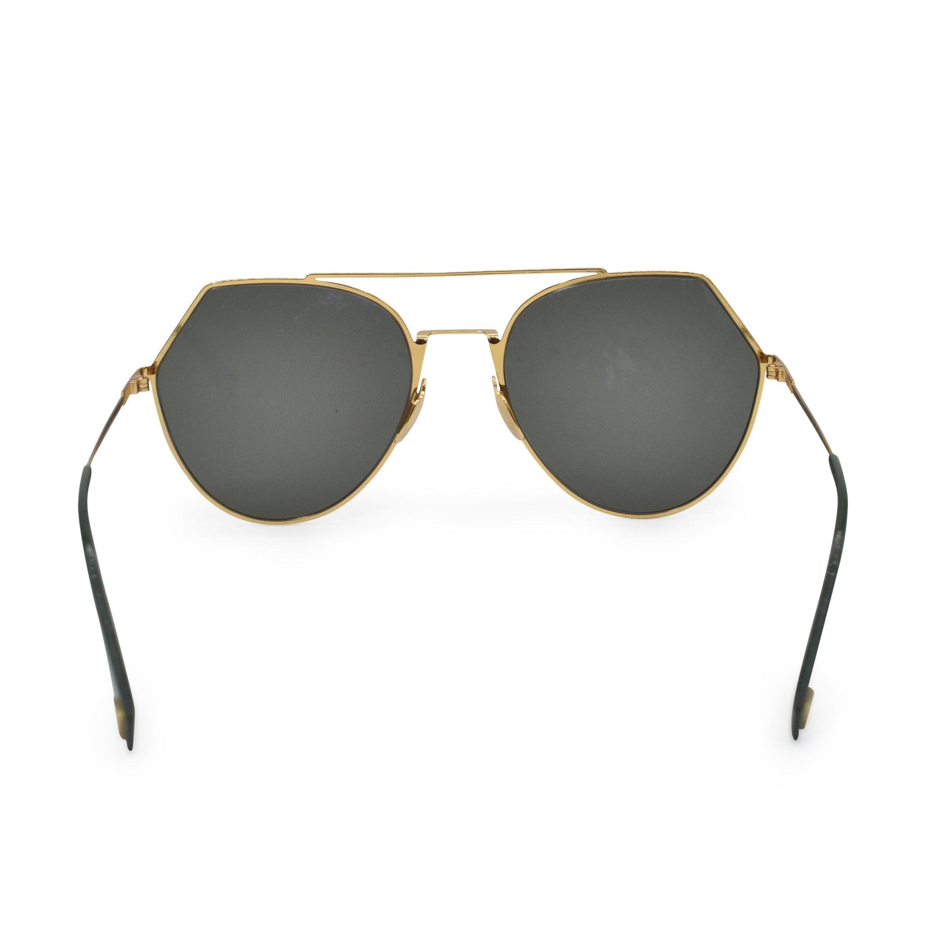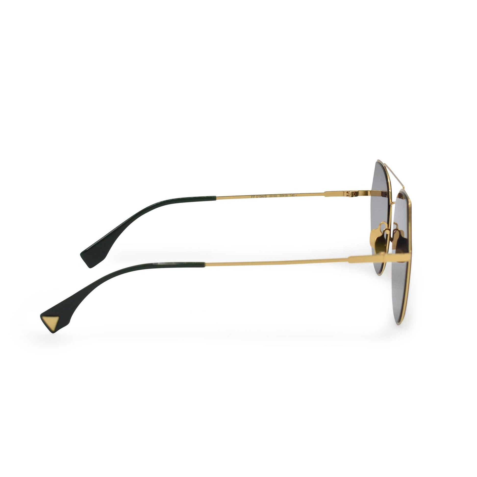 Fendi gold sunglasses with metal frame, reflective gold to green shift lenses, and green armband details.