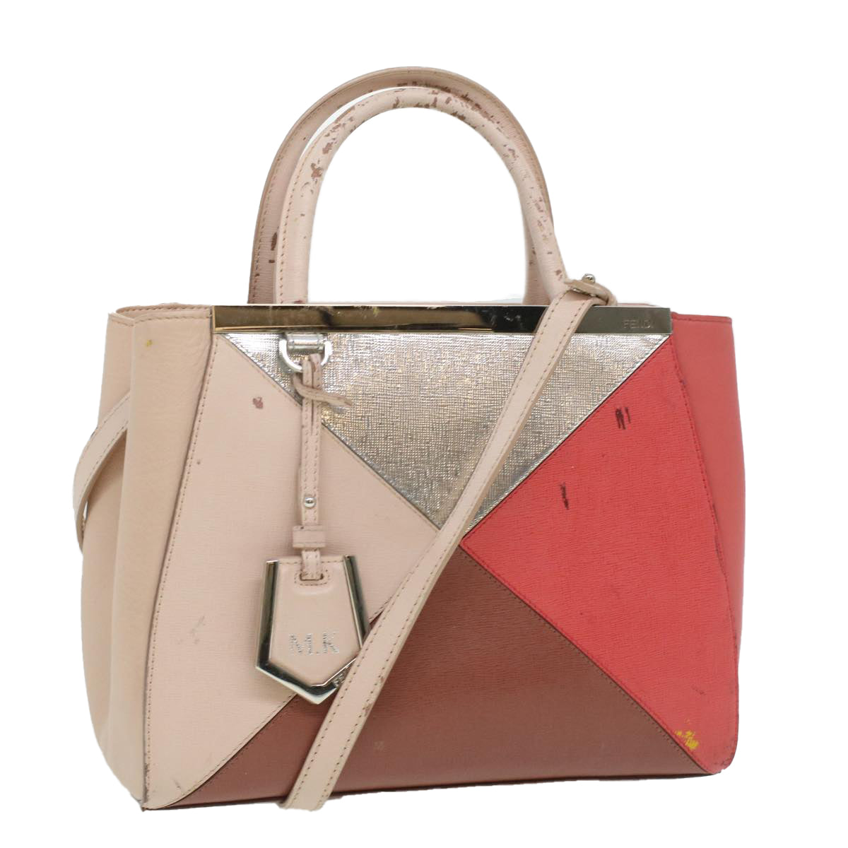 FENDI Hand Bag Leather Pink Silver beige cl260