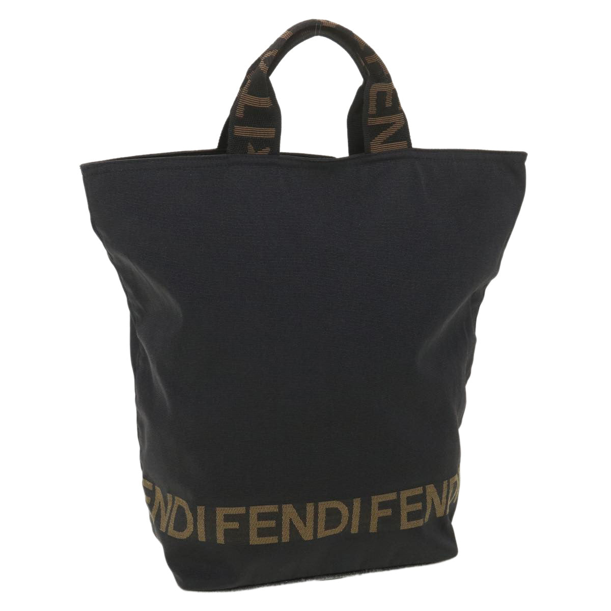 FENDI Hand Bag Nylon Black Brown Auth 38483