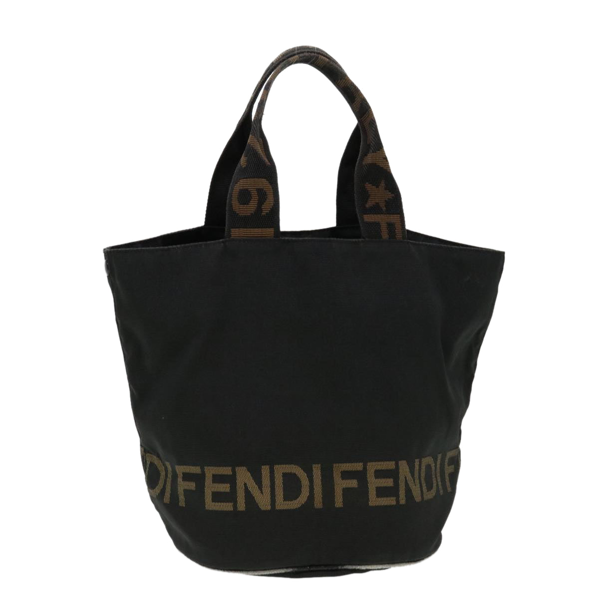 FENDI Hand Bag Nylon Black Brown Auth yb084