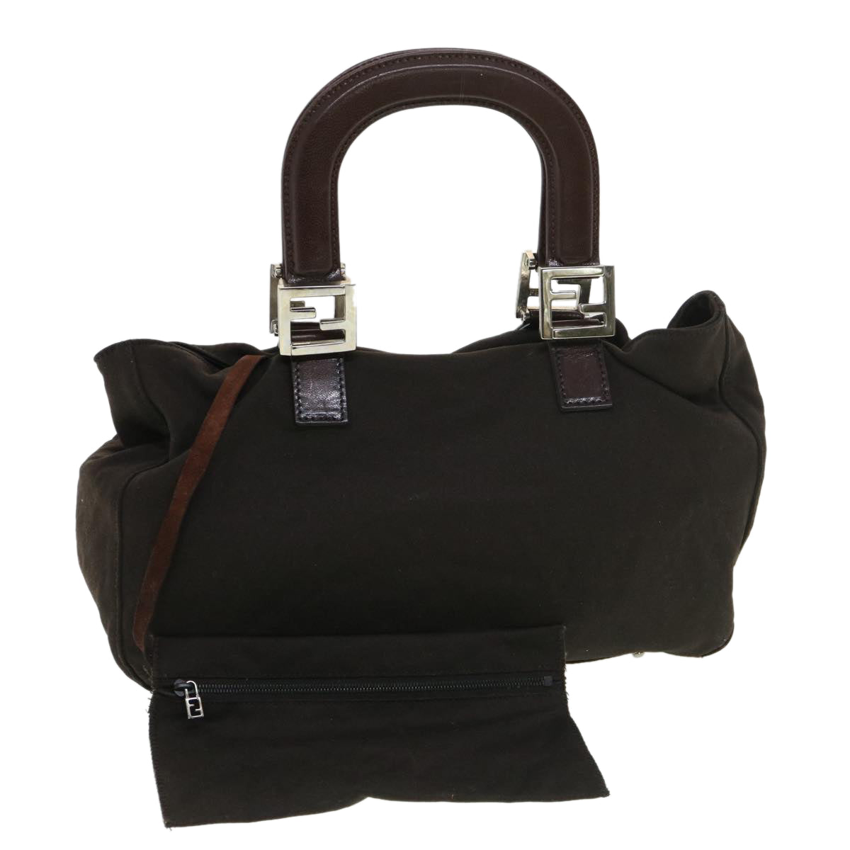 FENDI Hand Bag Nylon Brown Auth rd4558