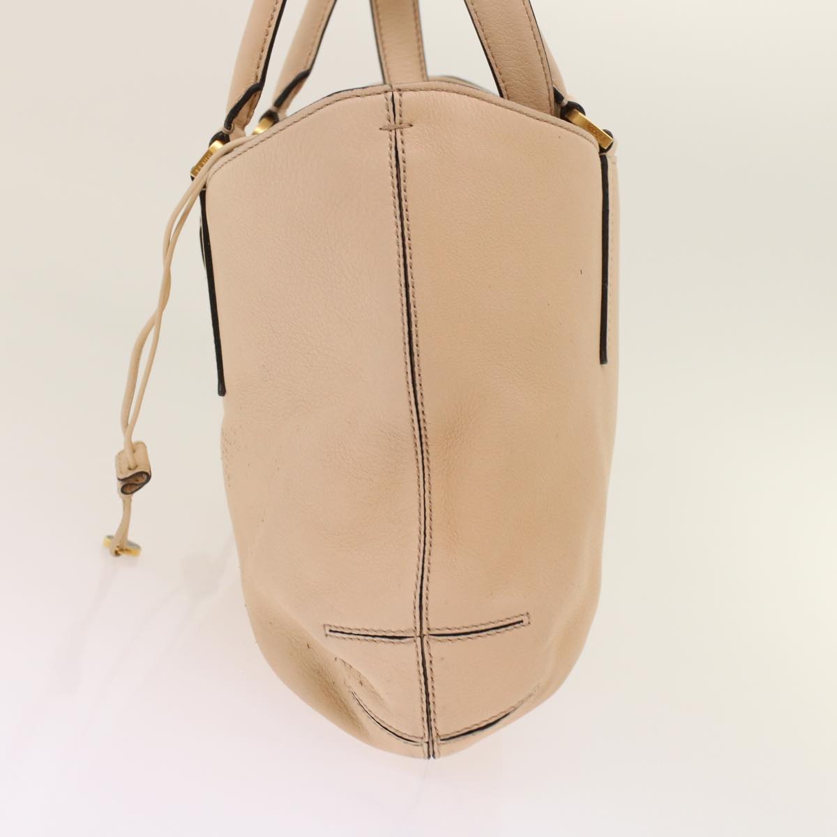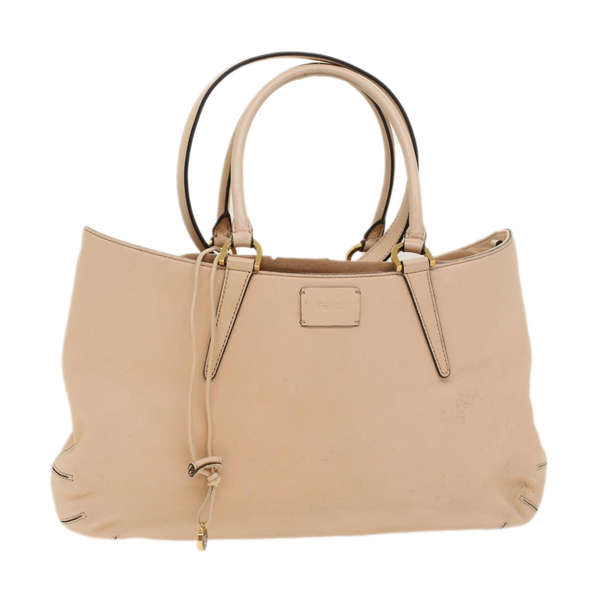 FENDI Hand Bag Suede Leather 2way Beige Auth 48745