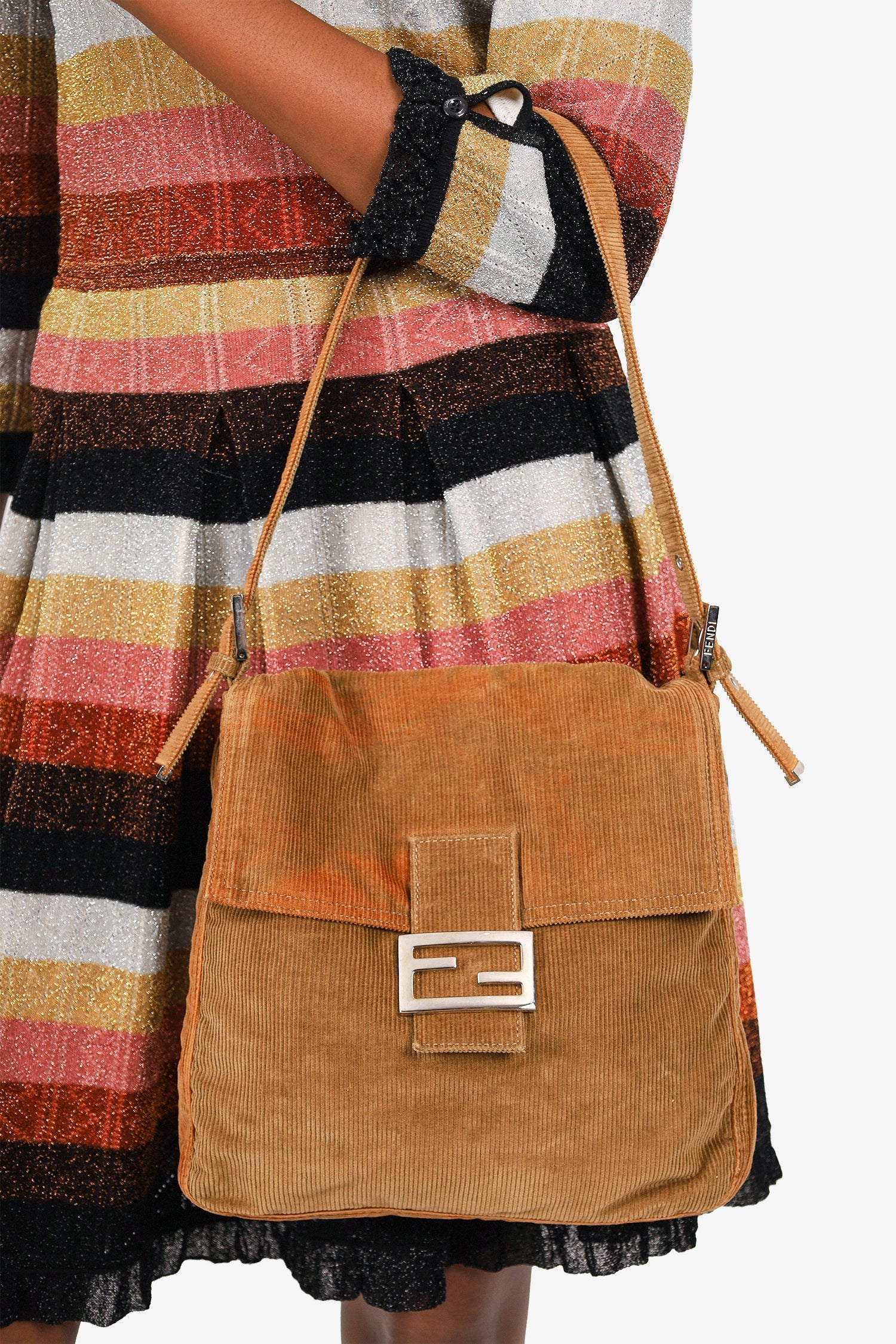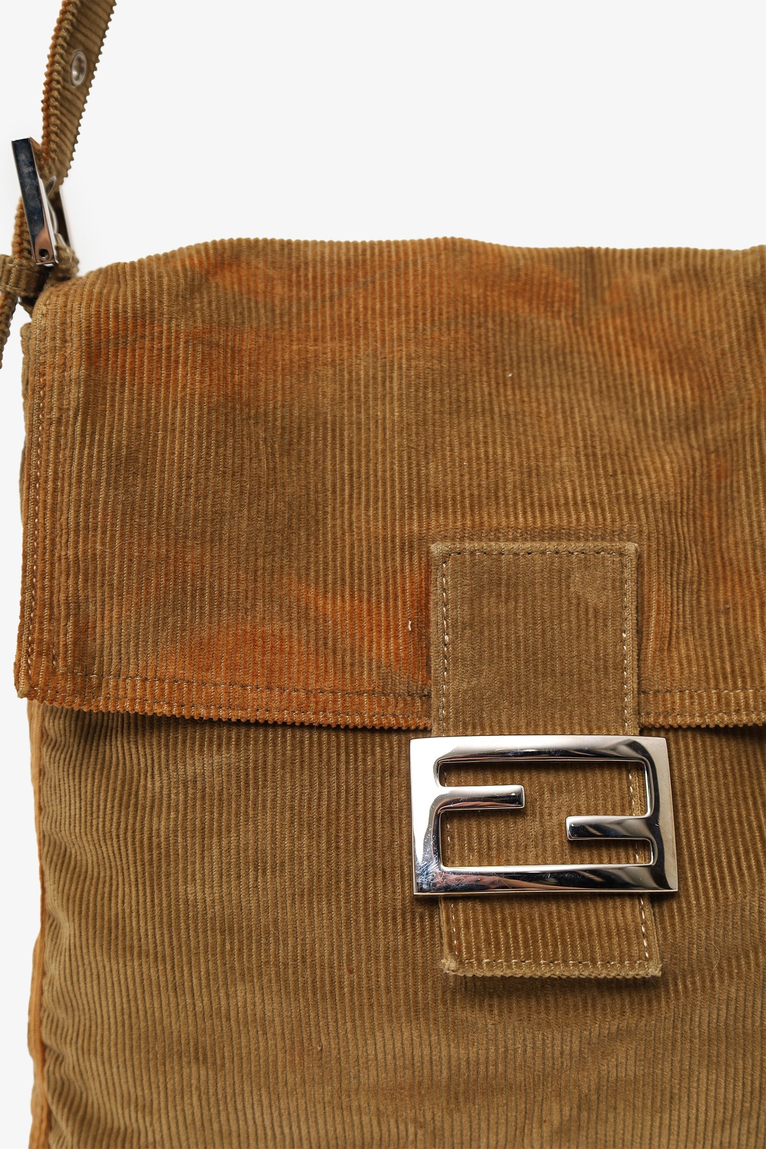 Fendi Khaki Corduroy Mamma Baguette Shoulder Bag 'As Is'